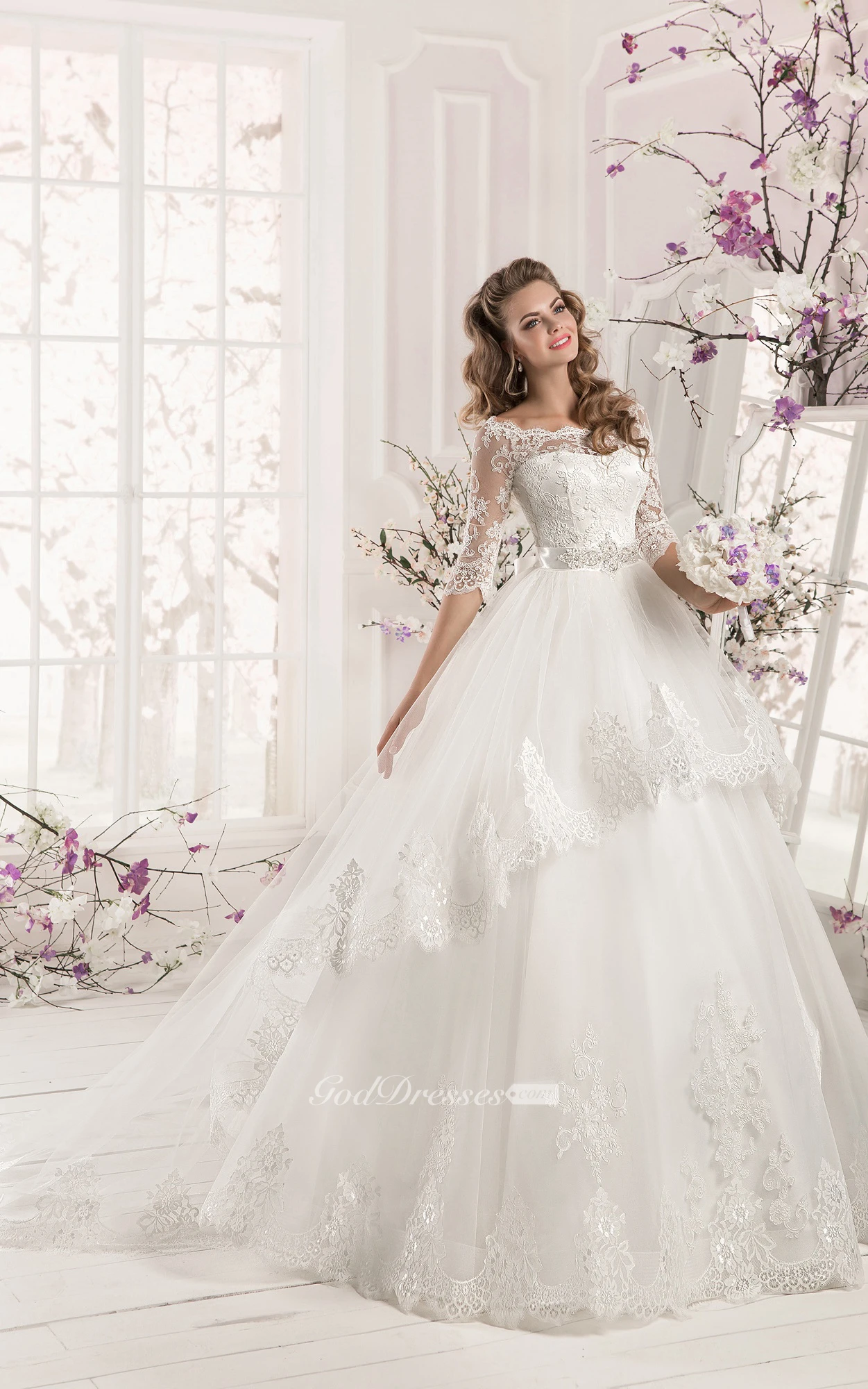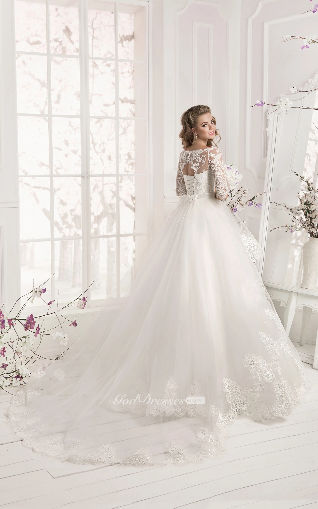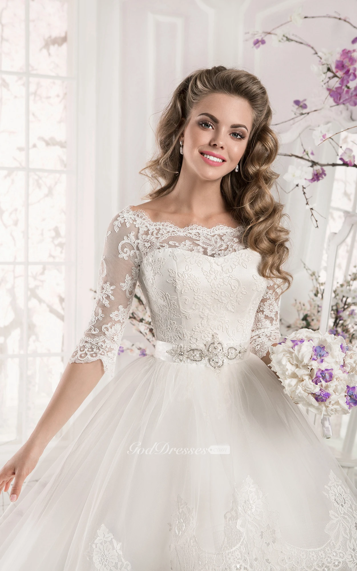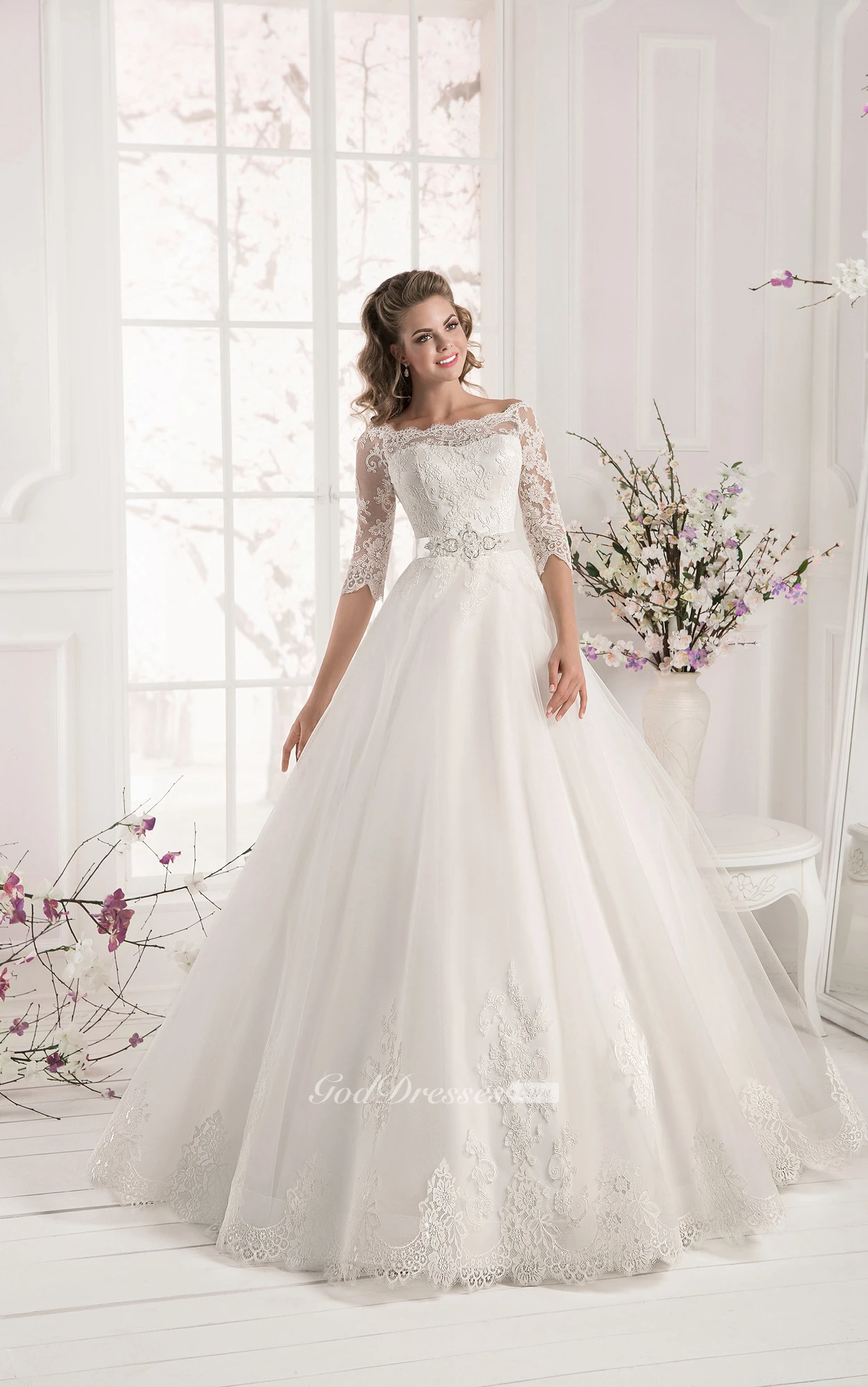 Bateau Neck Half Sleeve A-line Organza Wedding Dress With Lace Bodice