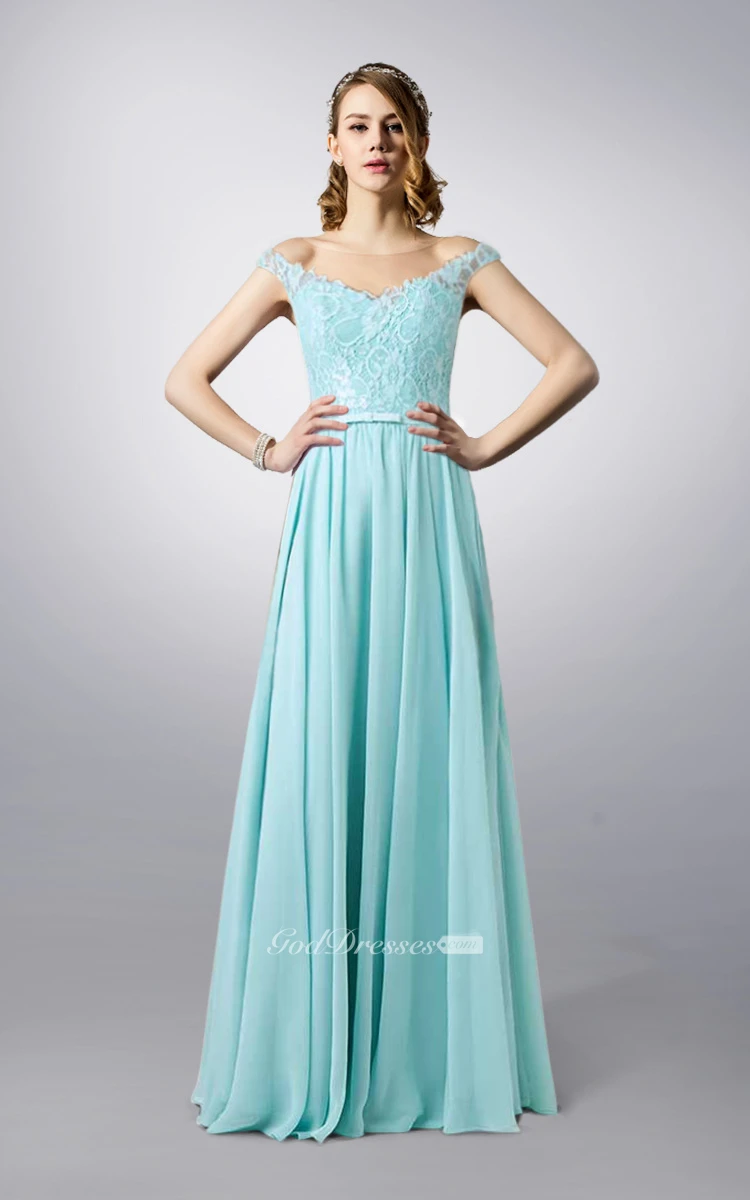 Bateau Neck Lace and Chiffon Long Dress With Illusion Back