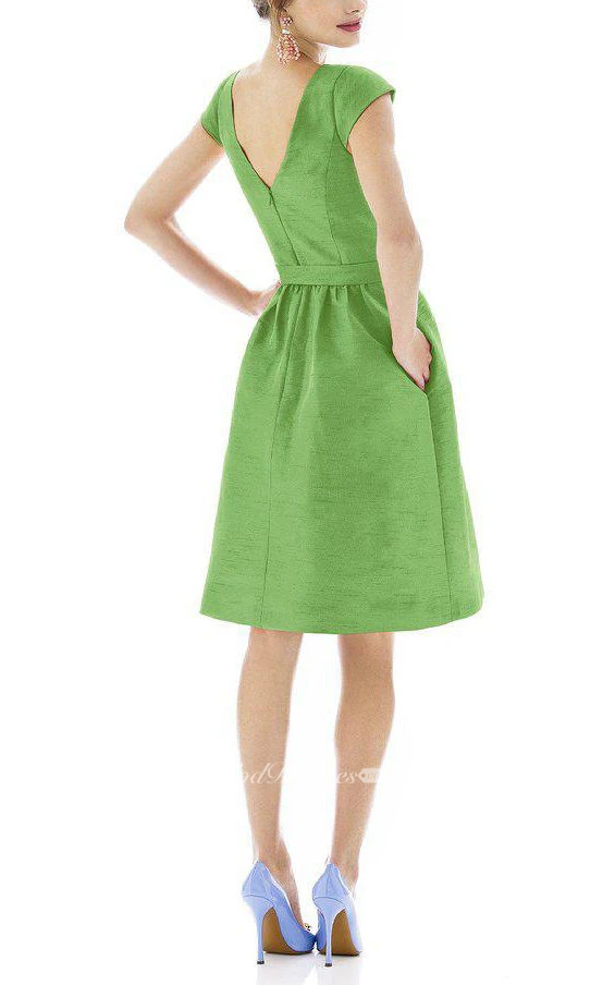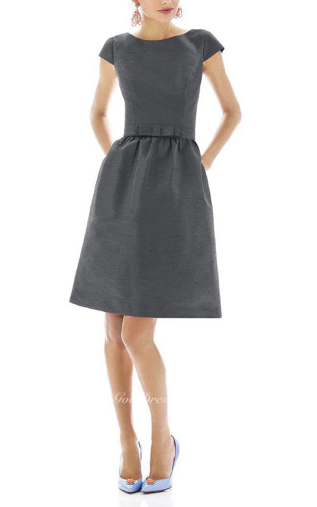 Bateau Neck Short Sleeve Satin Dress with Bow