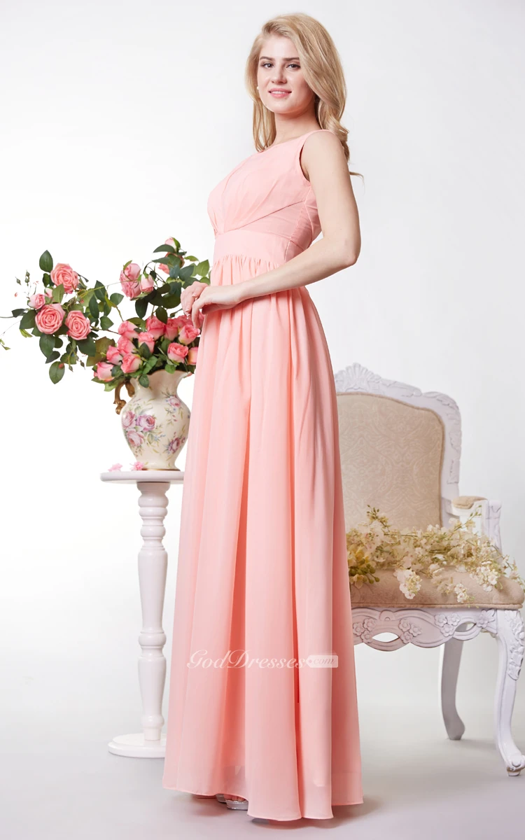 Bateau Neckline Chiffon A-line Floor Length Dress