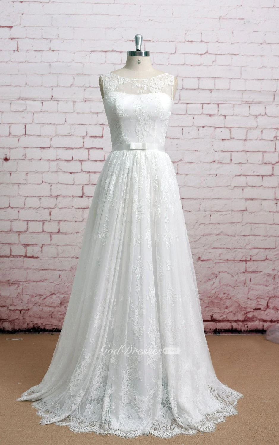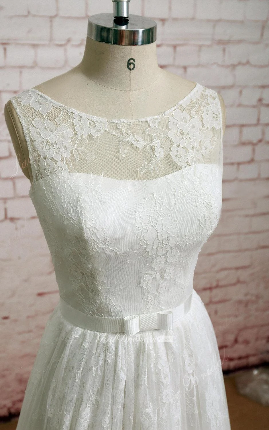 Bateau Neckline Sleeveless Lace A-Line Long Dress With Illusion Top
