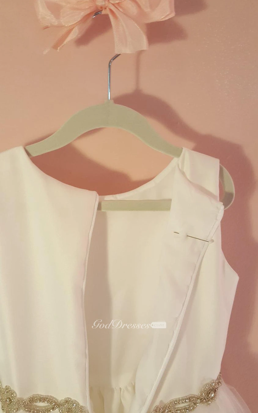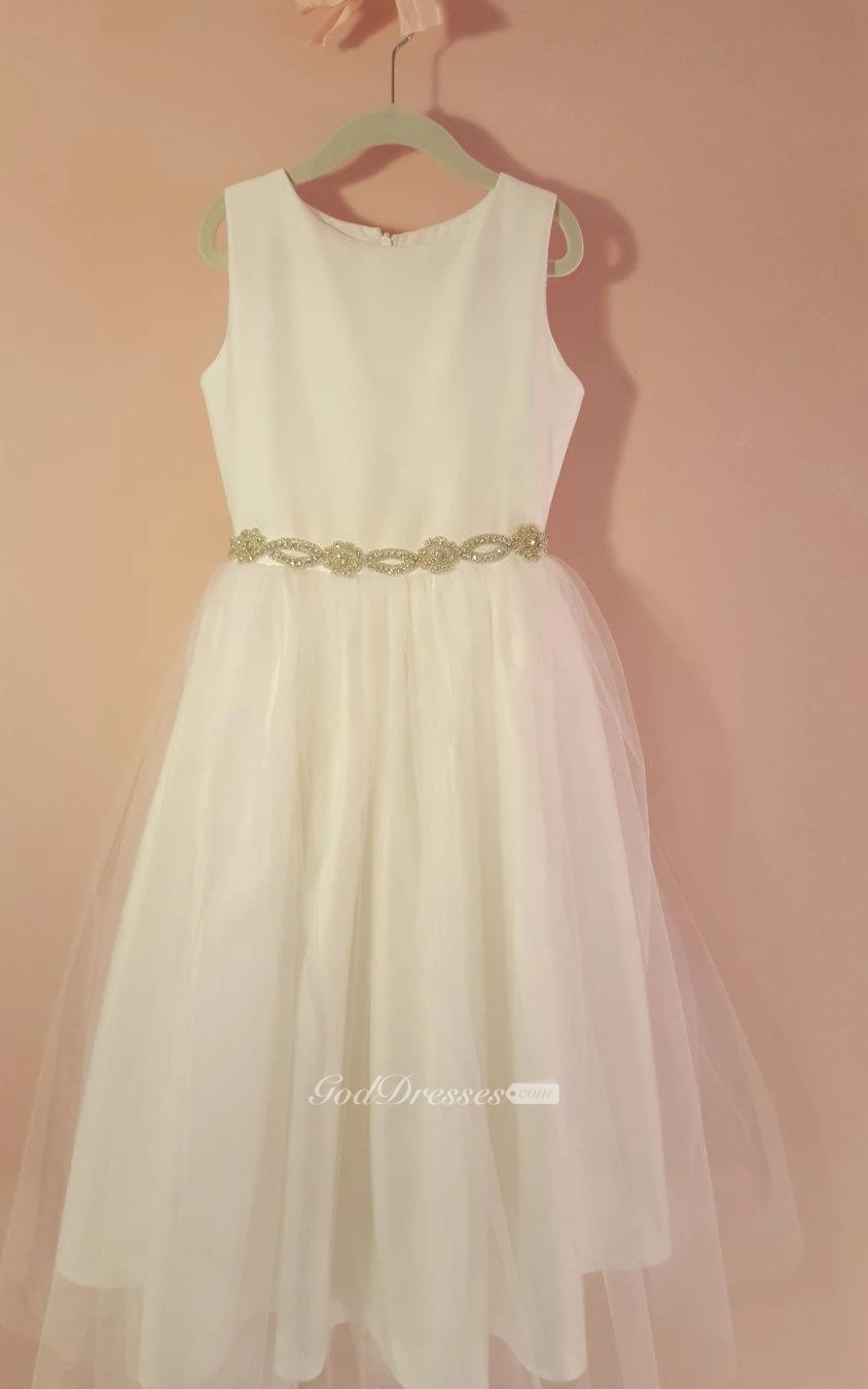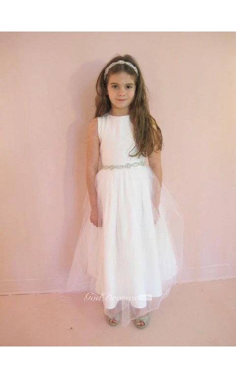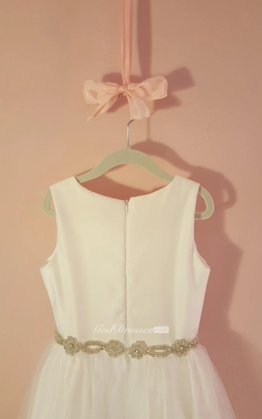 Bateau Sleeveless A-line Tulle Long Dress With Beading Waist