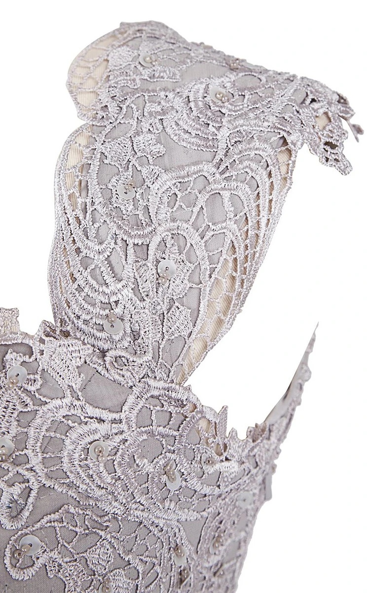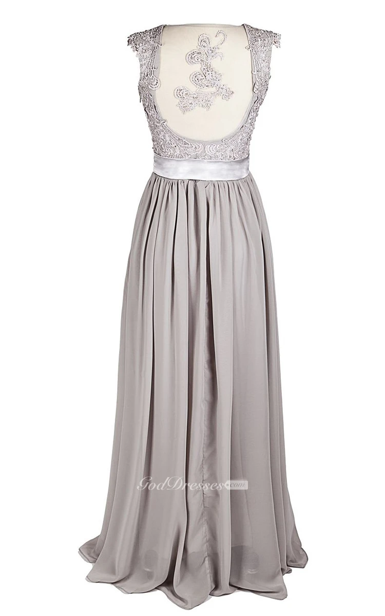 Beaded Lace Appliqued A-line Gown With Satin Band