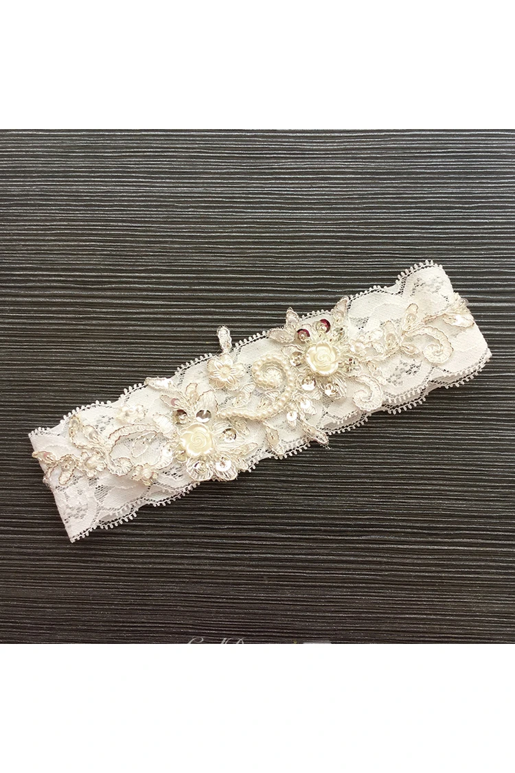 Beaded Pearl Lace Applique Stretch Sexy Garter Within Within 16-23inch