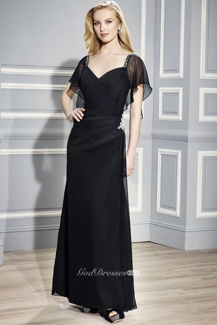 Beaded Poet Sleeve Sweetheart Chiffon Mother Of The Bride Dress