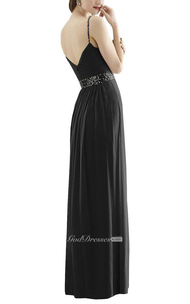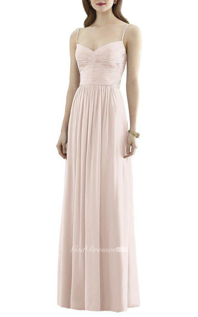 Beaded Spagetti Straps Ruched Long Chiffon Dress