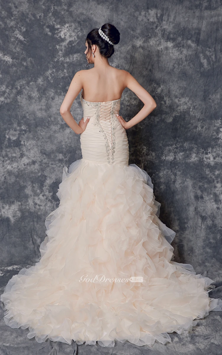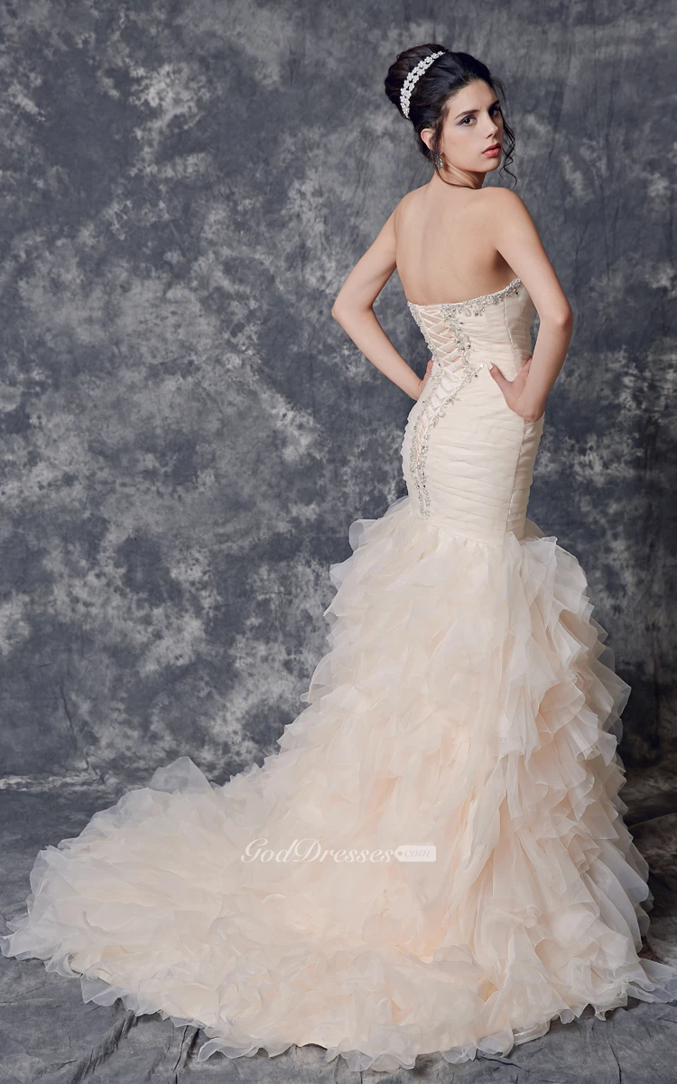Beaded Sweetheart Neckline Ruffled Mermaid Organza Dress With Lace Up
