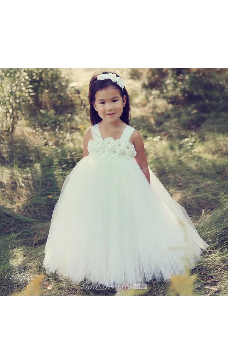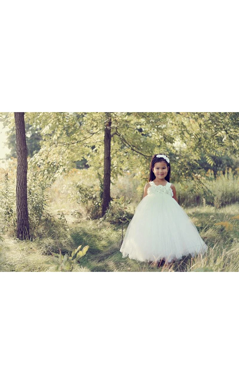 Beading Flower Bodice Empire Tulle Ball Gown With Ruffles