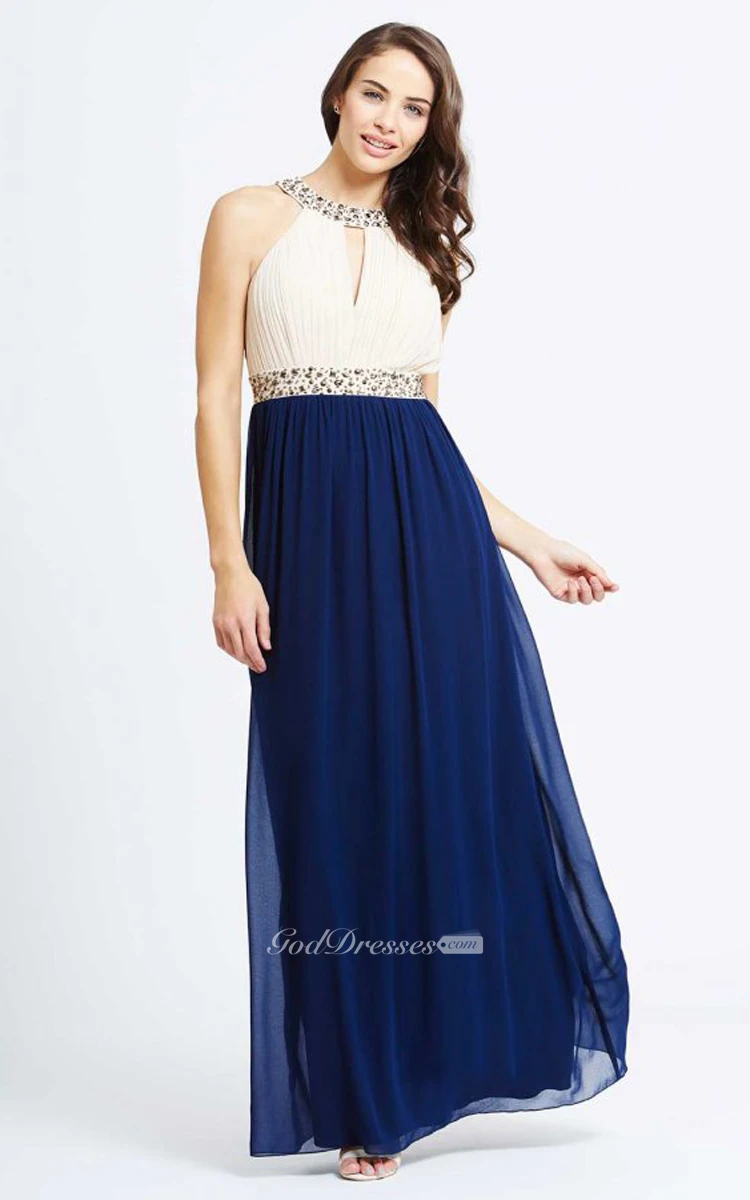 Beading-Neck A-Line Gown With Has Keyholes Beading Sash
