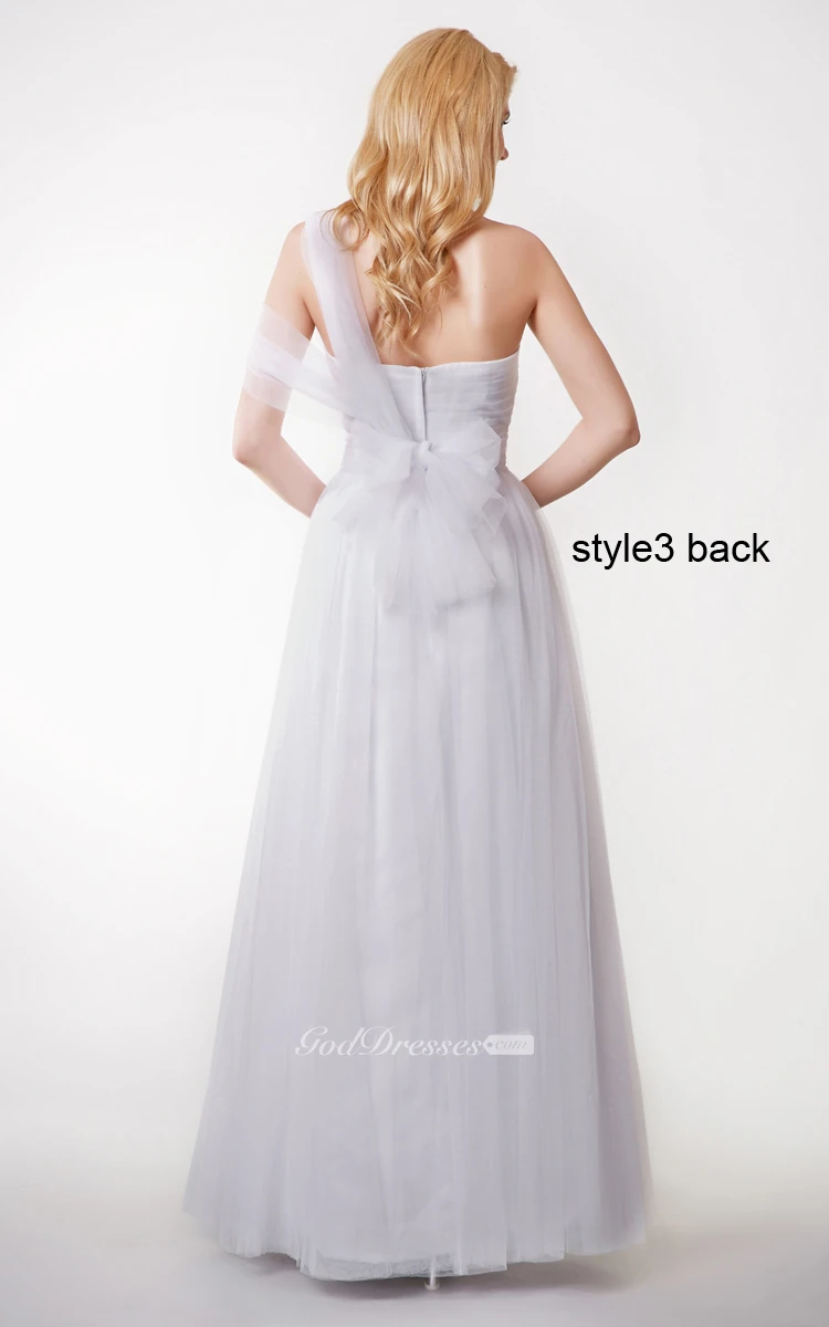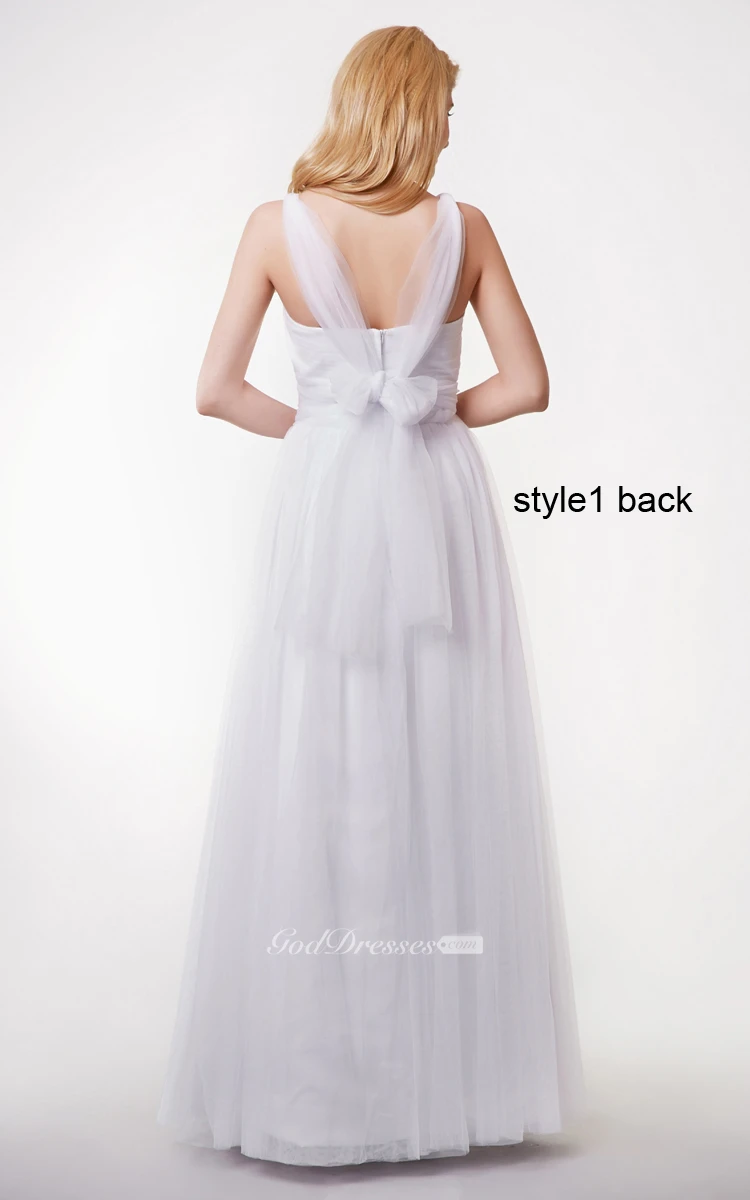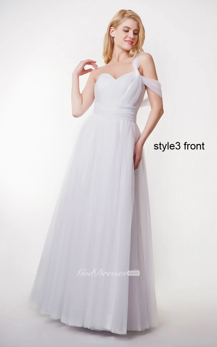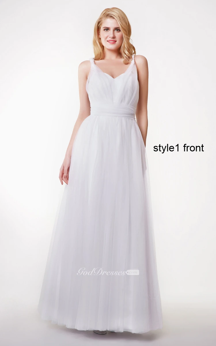 Beautiful Sleeveless A-line Pleated Tulle Gown With Convertible Straps