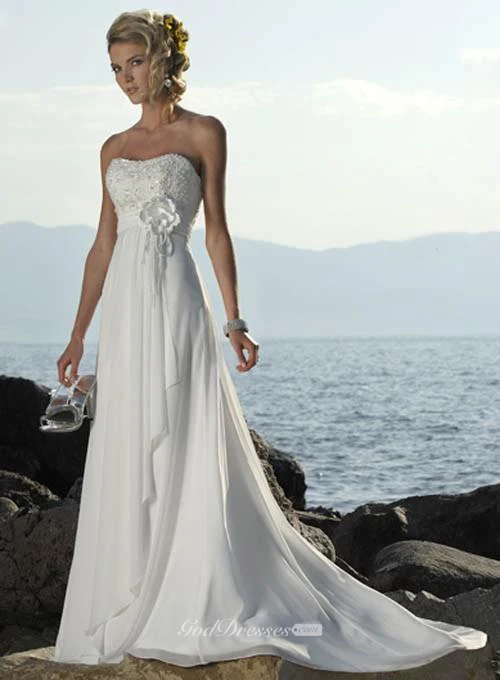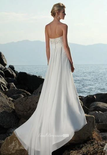 Beautiful Strapless A-Line Beach Chiffon Wedding Dress