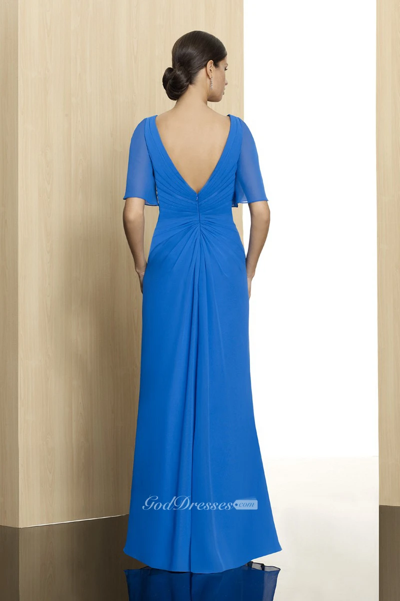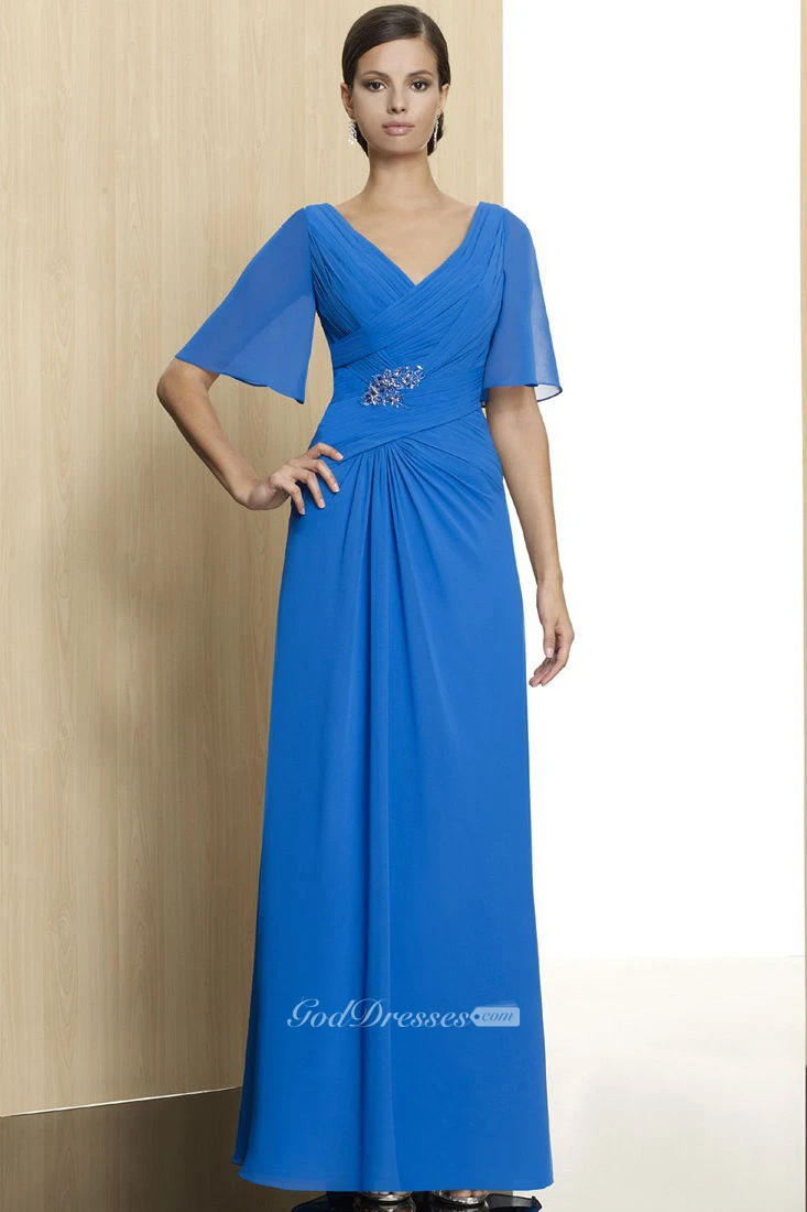 Bell Sleeve V-Neck Criss-Cross Chiffon Formal Dress With Beading