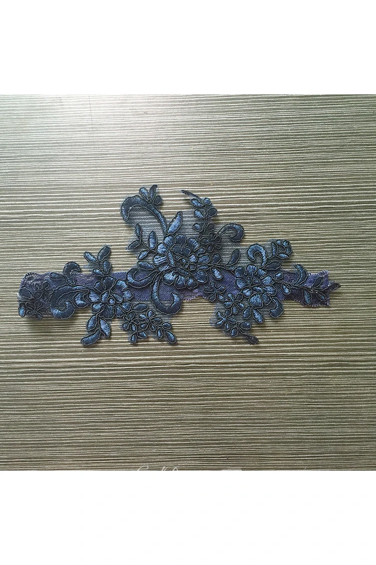 Blue Large Flower Lace Elastic Garter Within 16-23inch