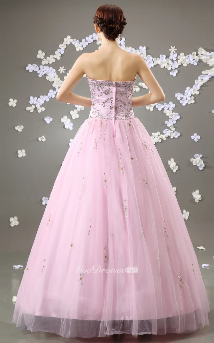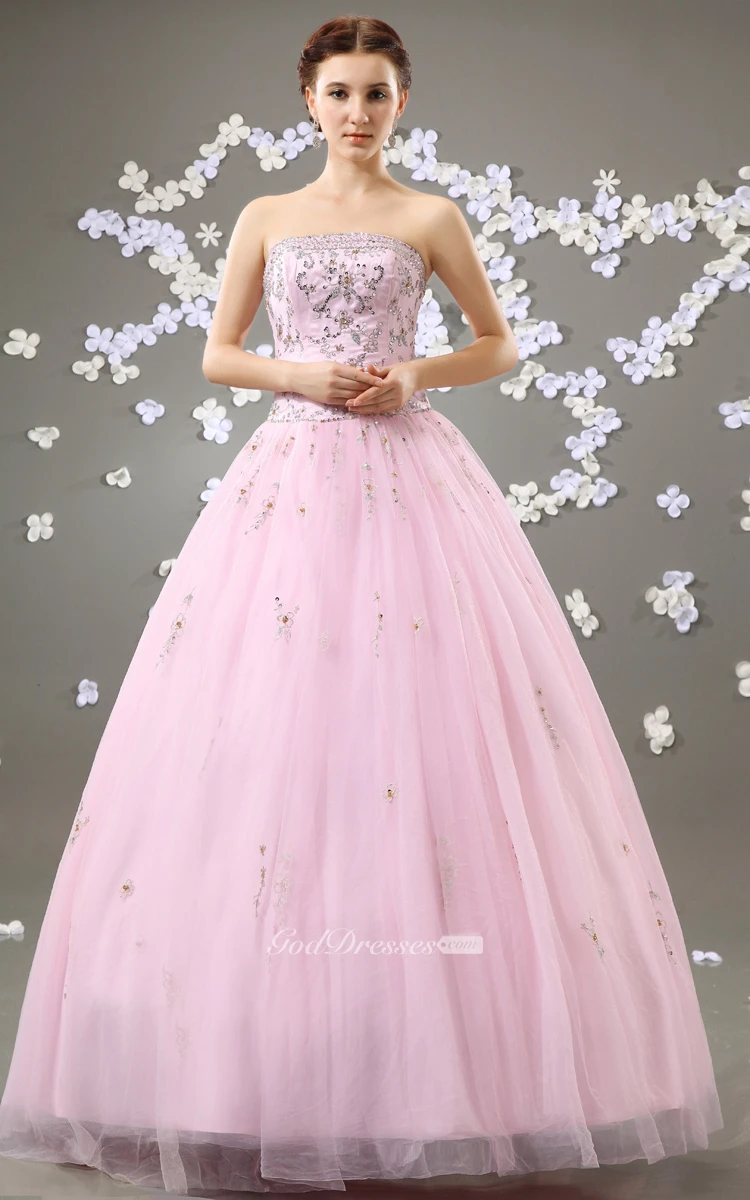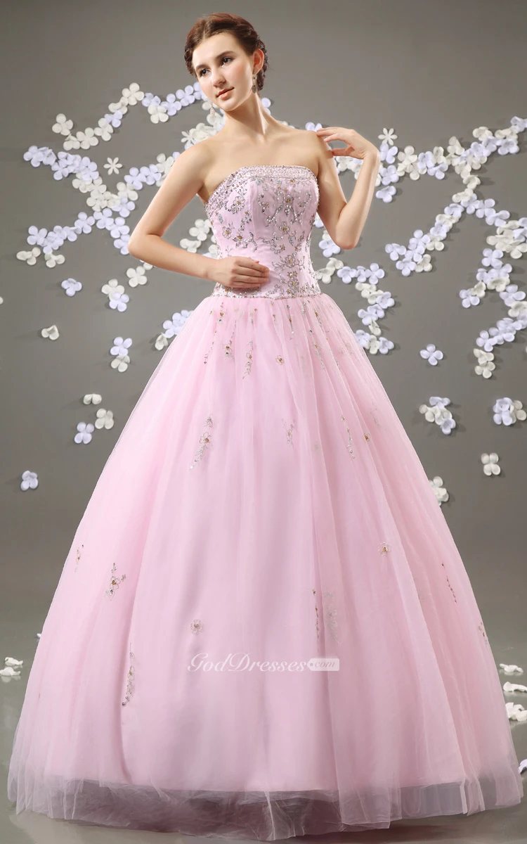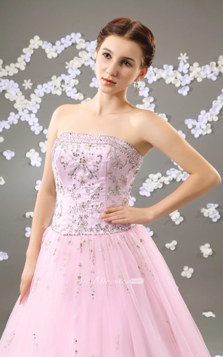 Blushing Strapless A-Line Ball Gown With Beading and Tulle Overlay
