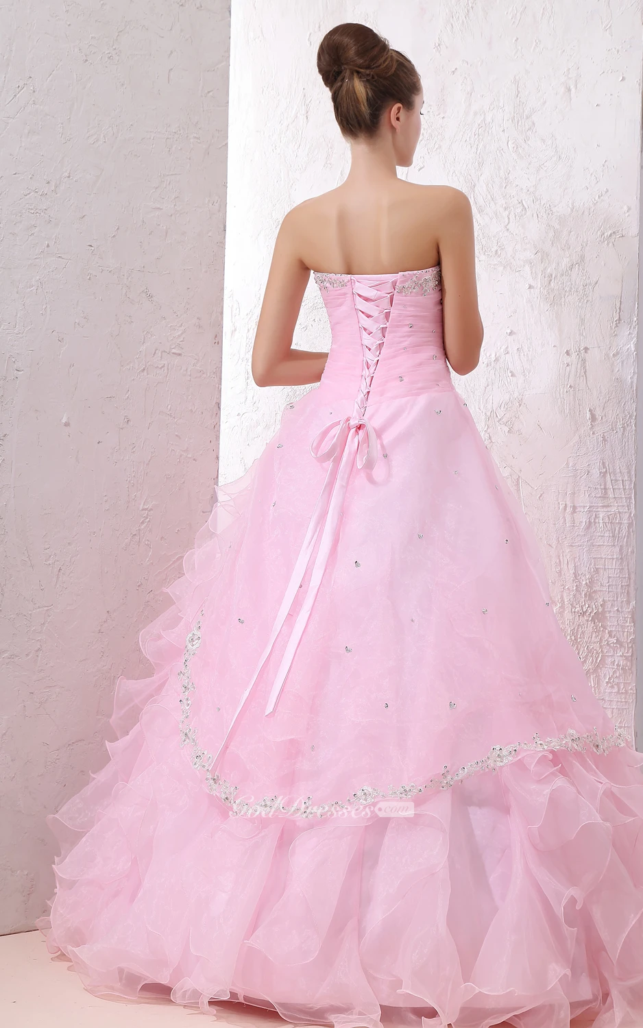 Blushing Sweetheart Ball Gown With Ruffles and Beaded Top