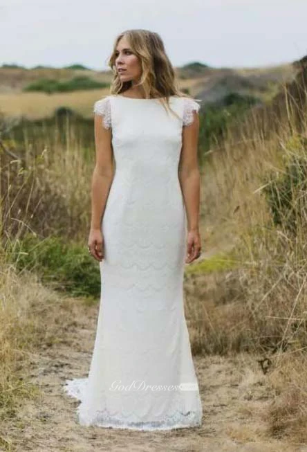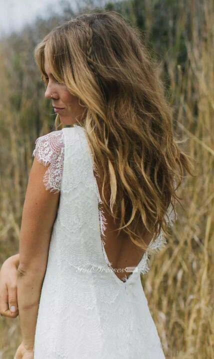 Bohemia Country Cap Sleeves Sexy Backless Lace Mermaid Wedding Dress