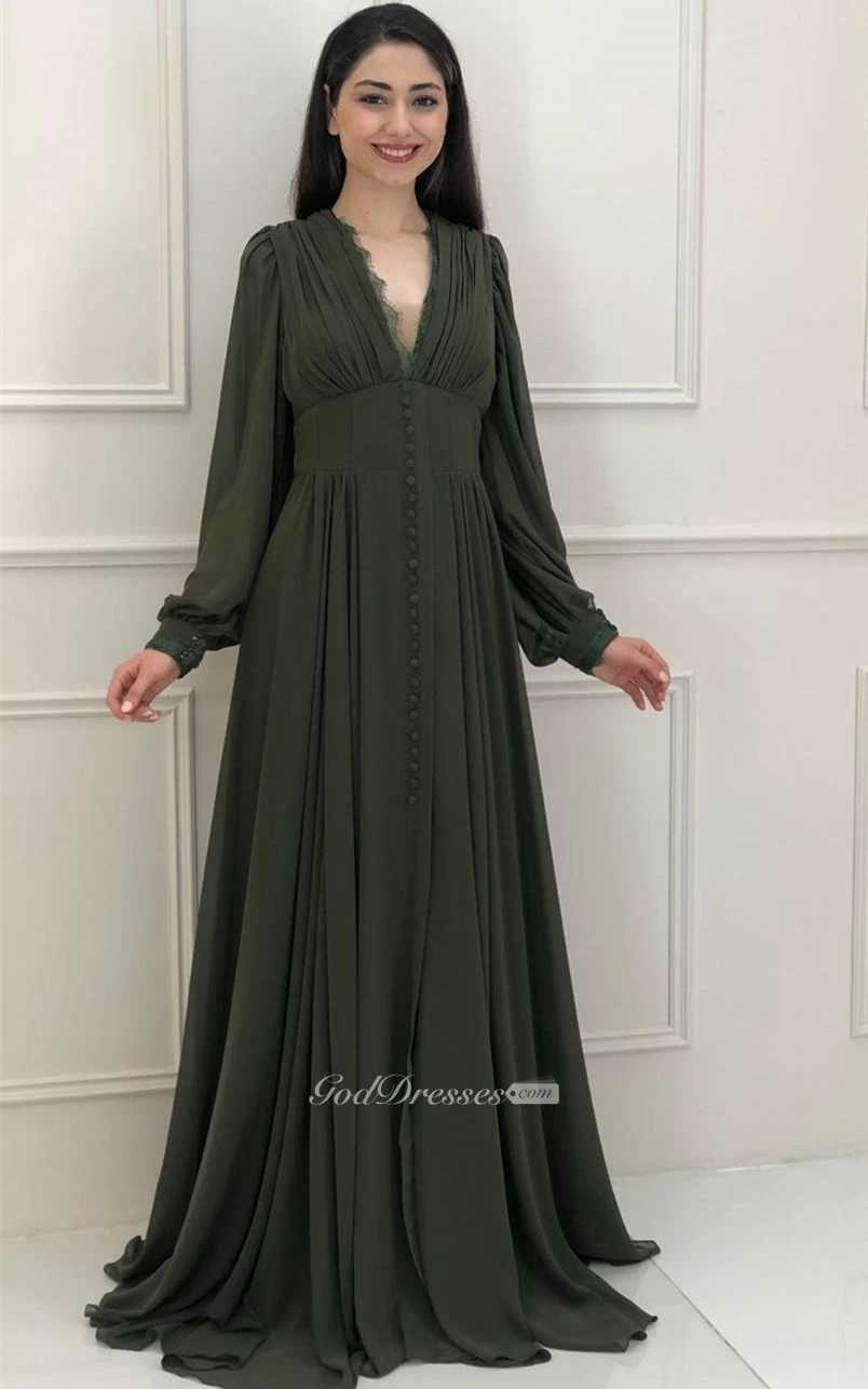 Bohemian Empire Chiffon V-neck Evening Dress with Ruching