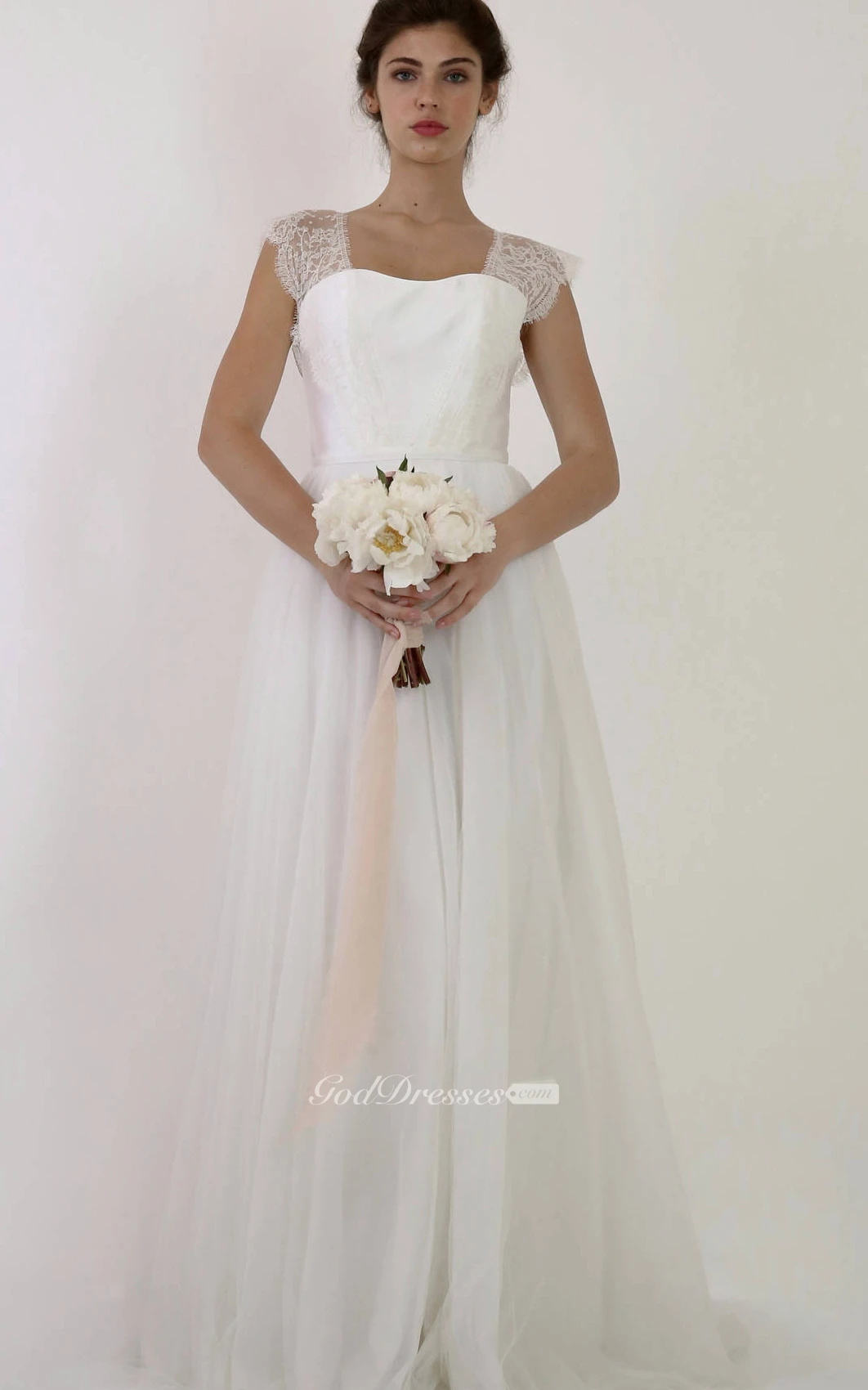 Bohemian Tulle Scoop Sleeveless Bow Wedding Dress With Deep-V Back