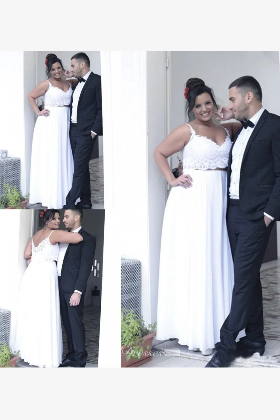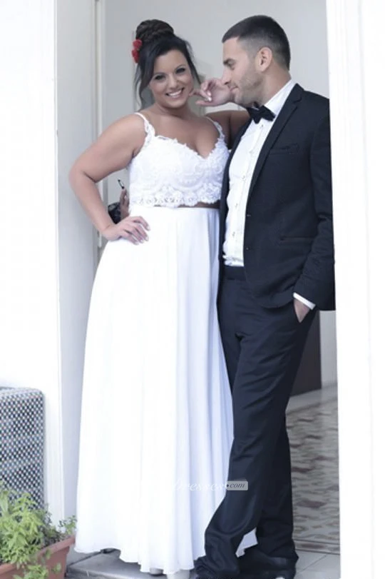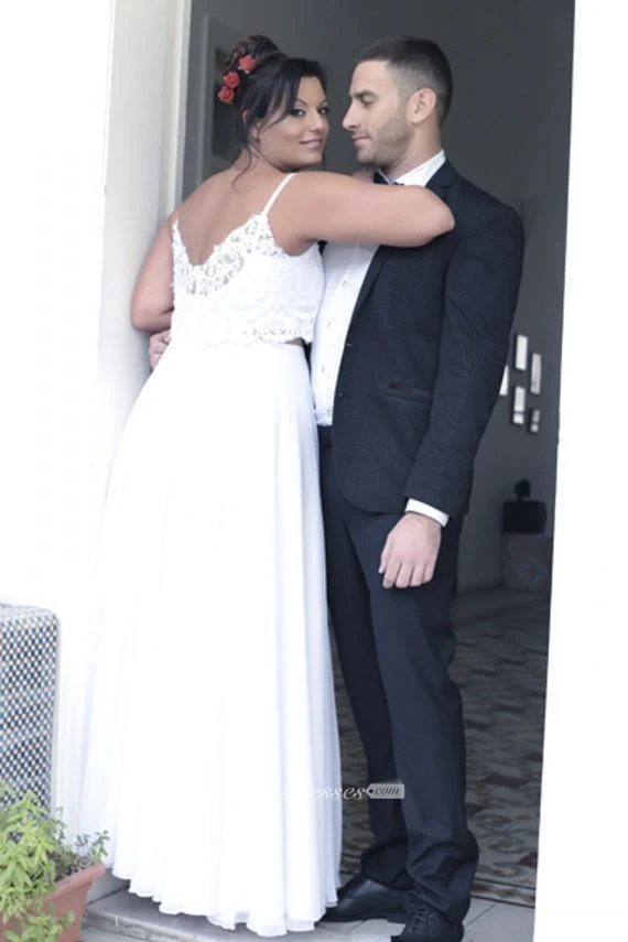 Bohemian Two Piece V-neck Beach Lace And Chiffon Dress