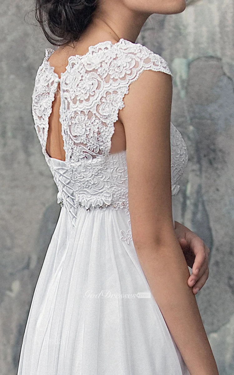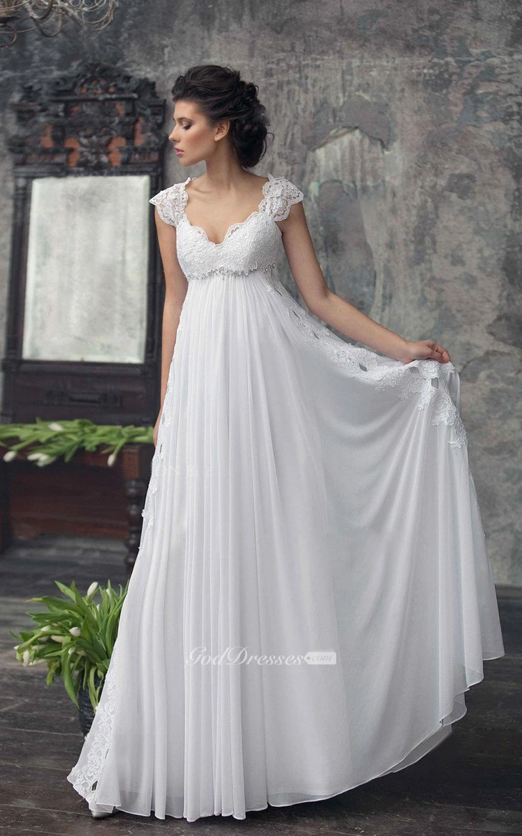 Empire Cap-Sleeve Chiffon Dress With Pleats And Appliques