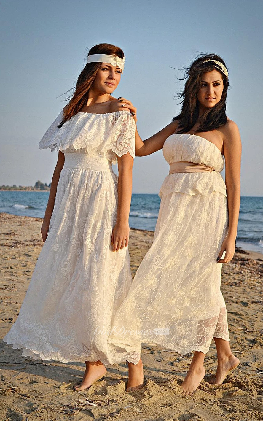 Boho Off-The-Shoulder Empire Anckle-Length Lace Wedding Dress With Sash