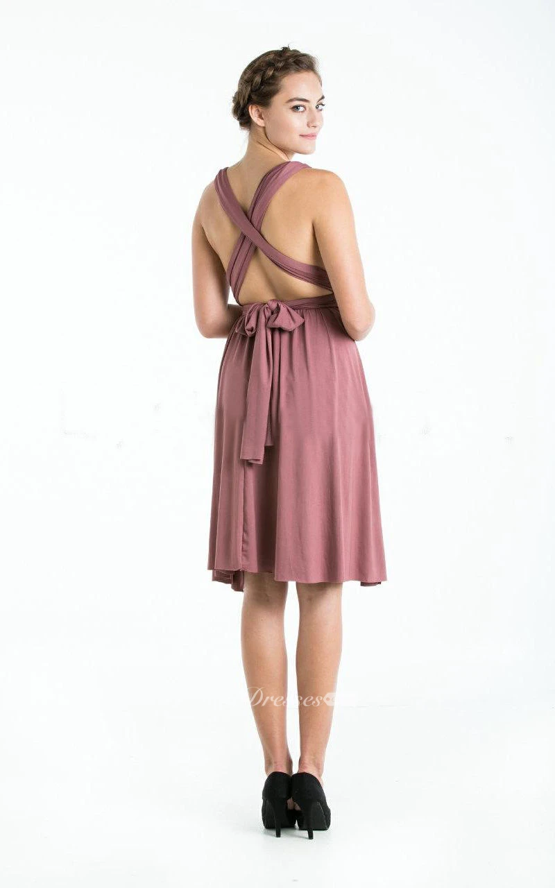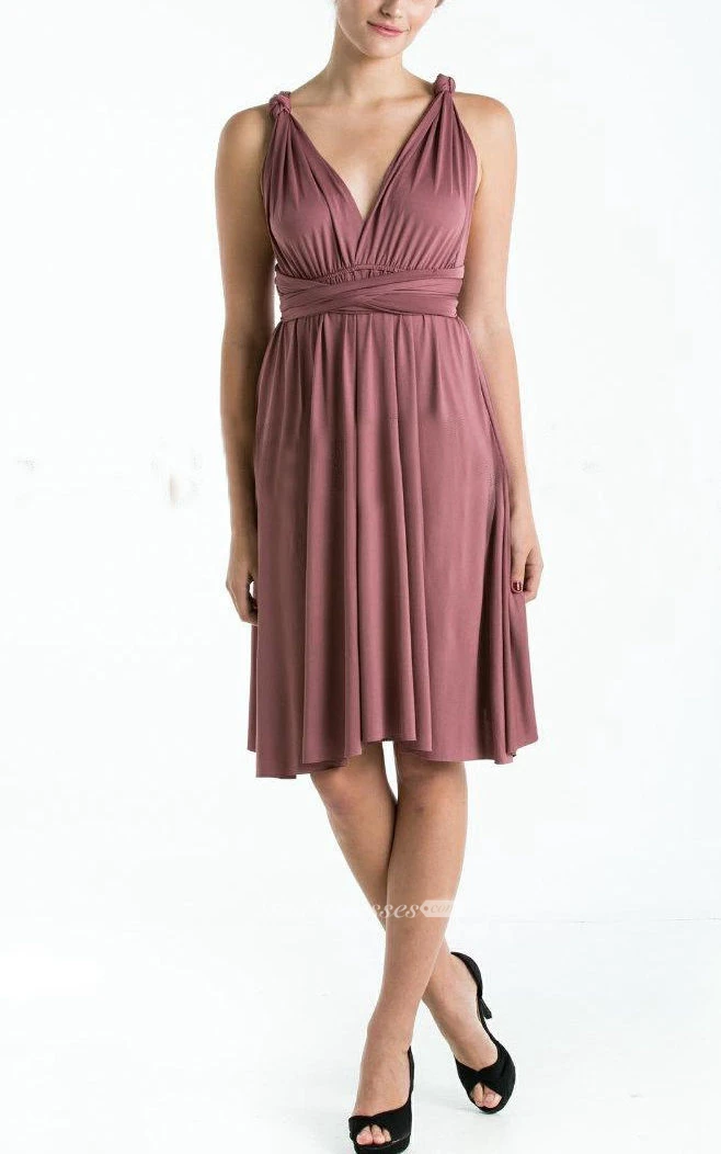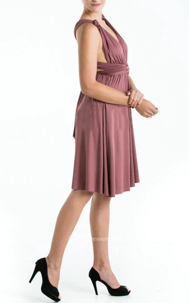 Bridesmaid Infinity Plum Straight Hem Knee Length Wrap Convertible Wedding Dress