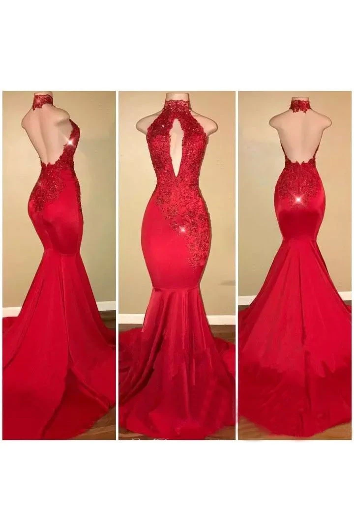 Brush Train Mermaid Hater Satin Sexy Open Back Appliques Sleeveless Dress