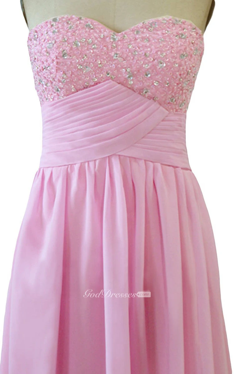 Bust-embellishmented Chiffon A-line Gown With Ruched Band