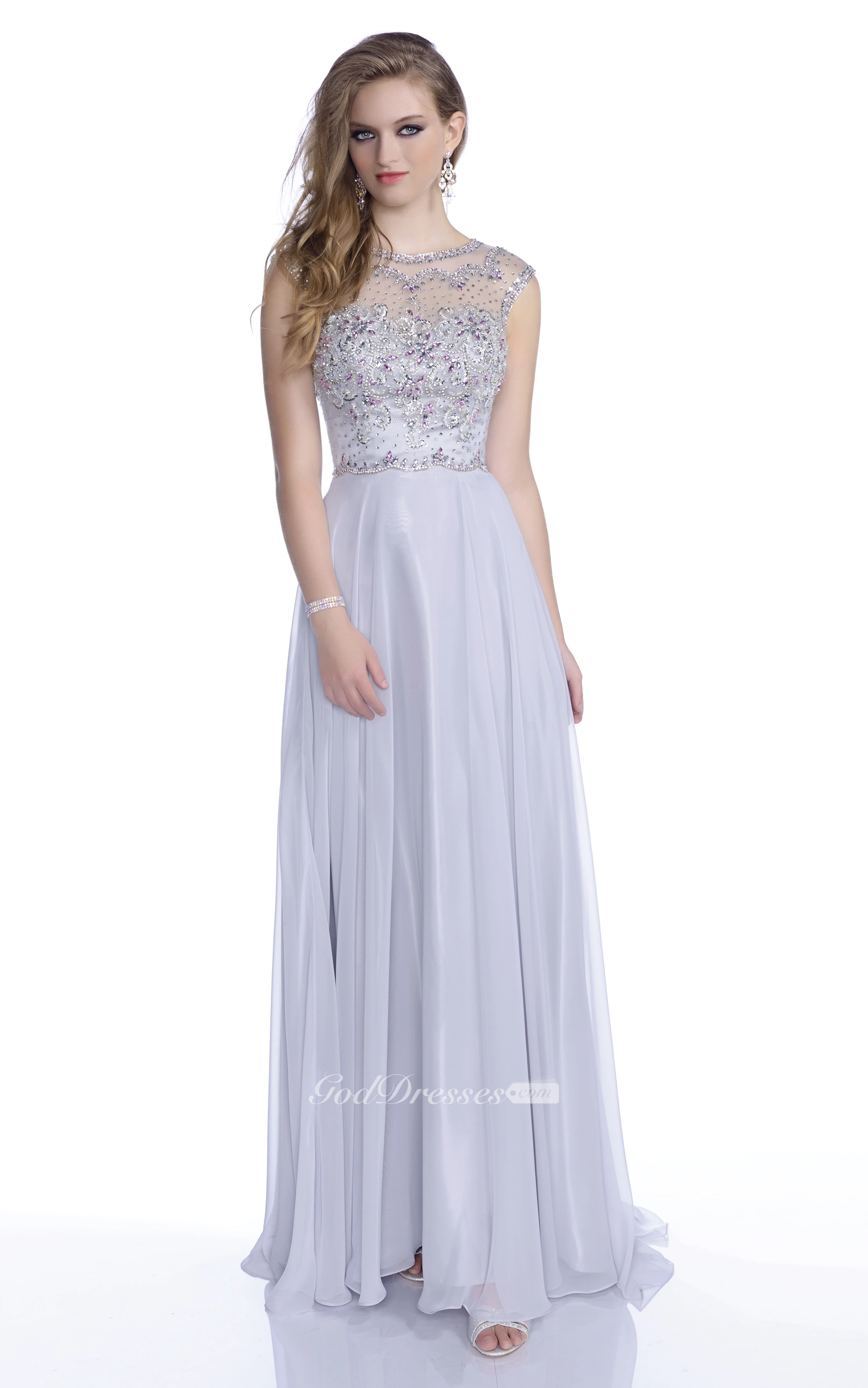 Cap Sleeve A-Line Chiffon Prom Dress Featuring Shining Rhinestone Bodice