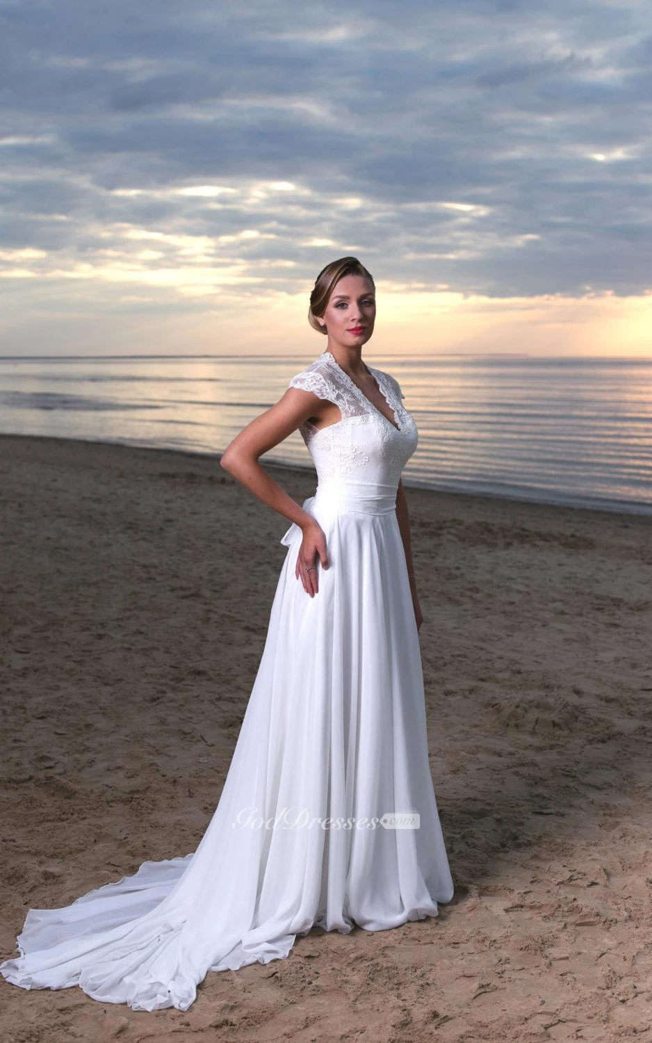 Beautiful dress! I purchased this dress without much hope of it actually working for my upcoming beach wedding. I had tried on so many dresses prior to this one but when I put this one on, I knew it was the one! It's gorgeous.