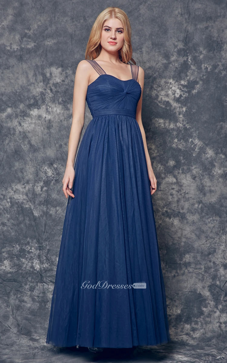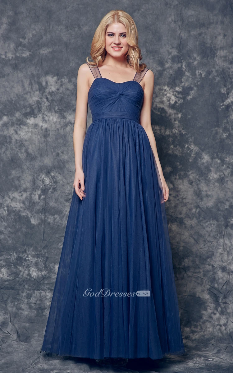 Cap Sleeve A-line Ruched Top Long Tulle Dress