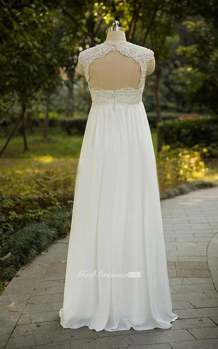 Cap Sleeve Chiffon Lace Weddig Dress