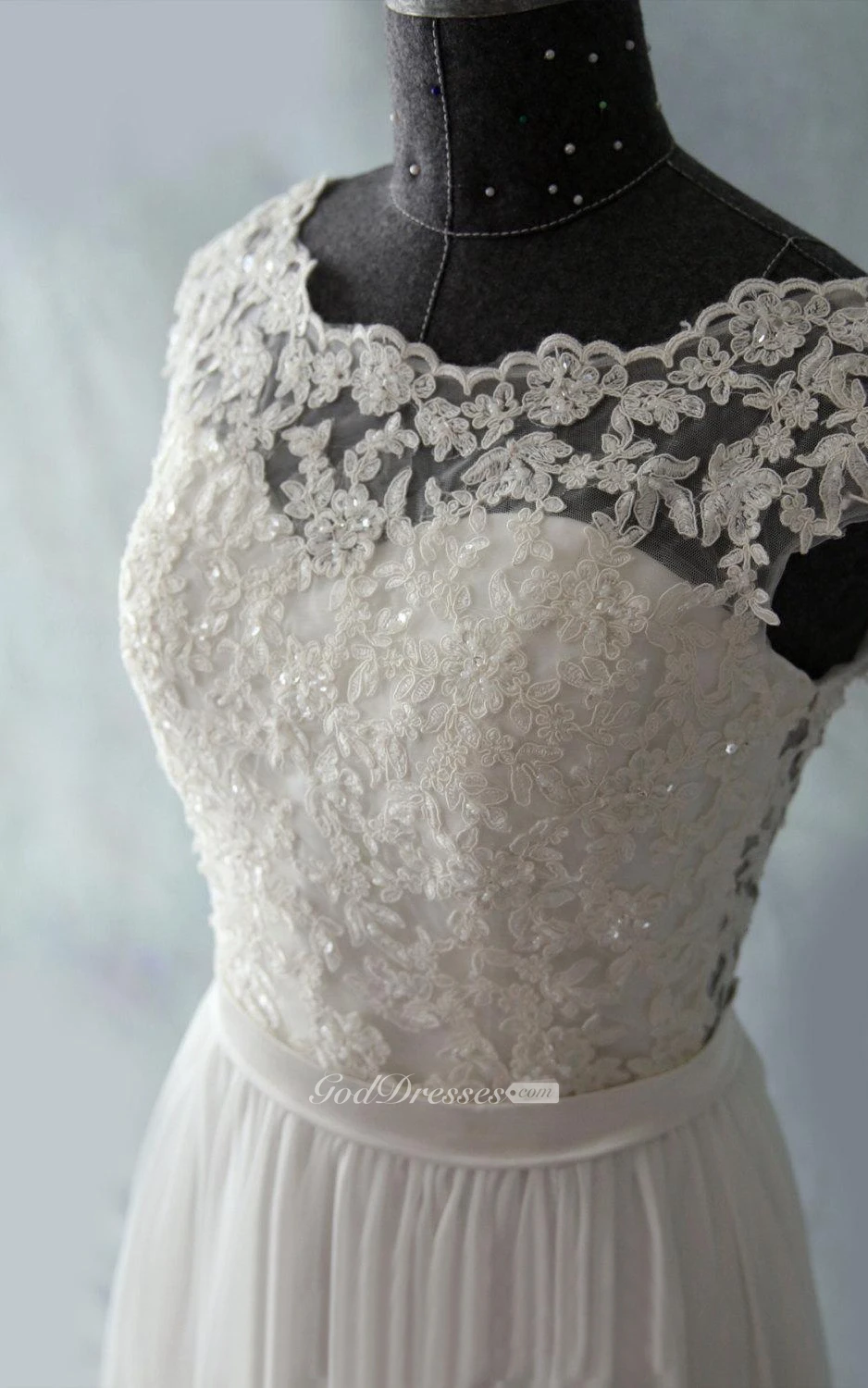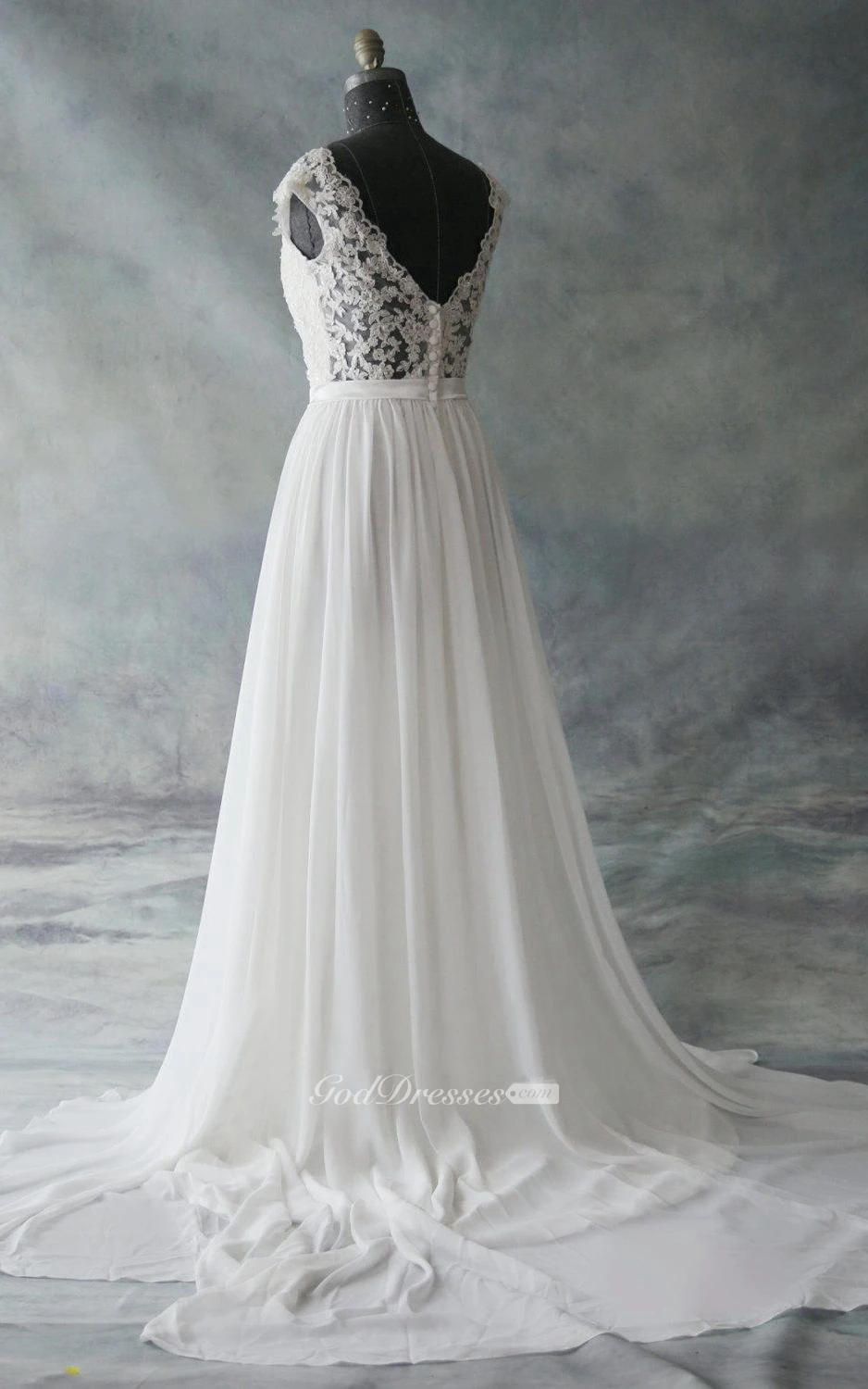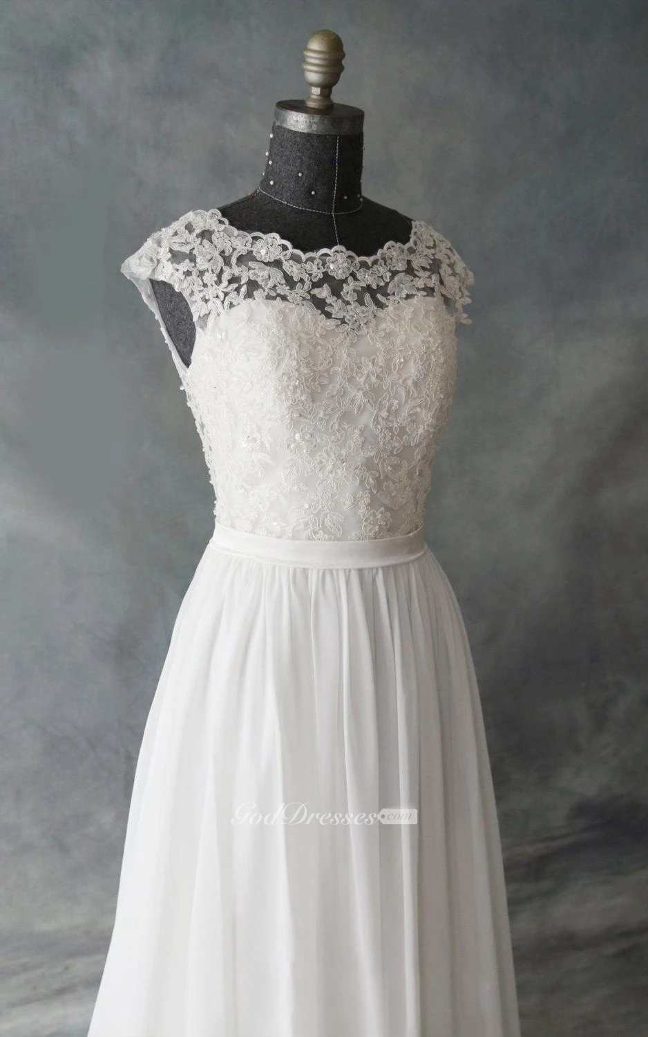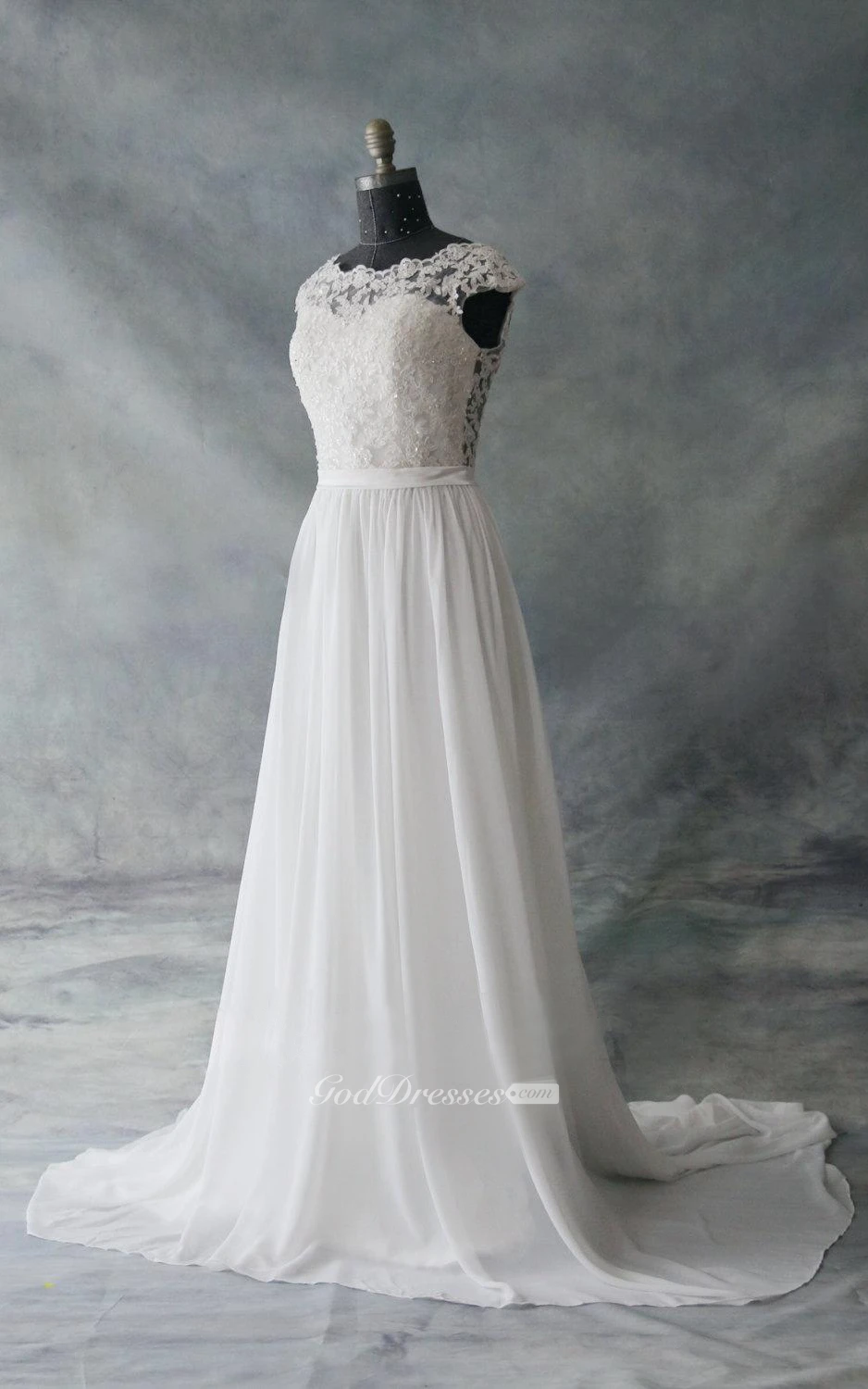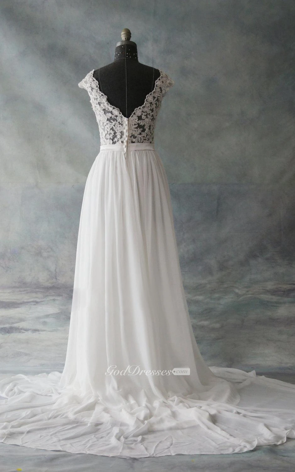 Cap Sleeve Chiffon and Lace Dress With Low-V Back