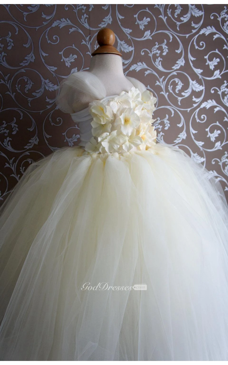 Cap Sleeve Floral Top Tiered Tulle Ball Gown