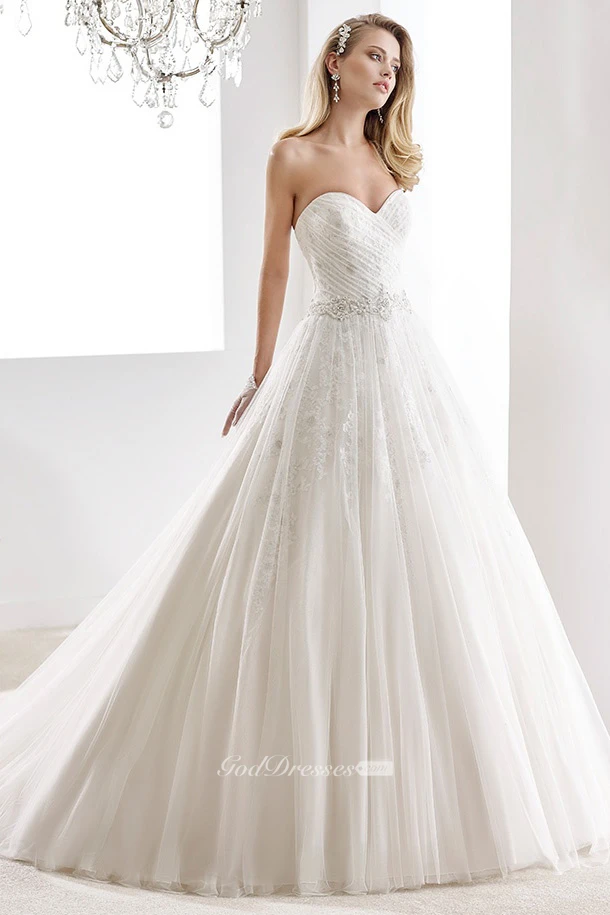 Cap sleeve Illusion Lace Wedding Gown with Open Back and Back Detachable Train