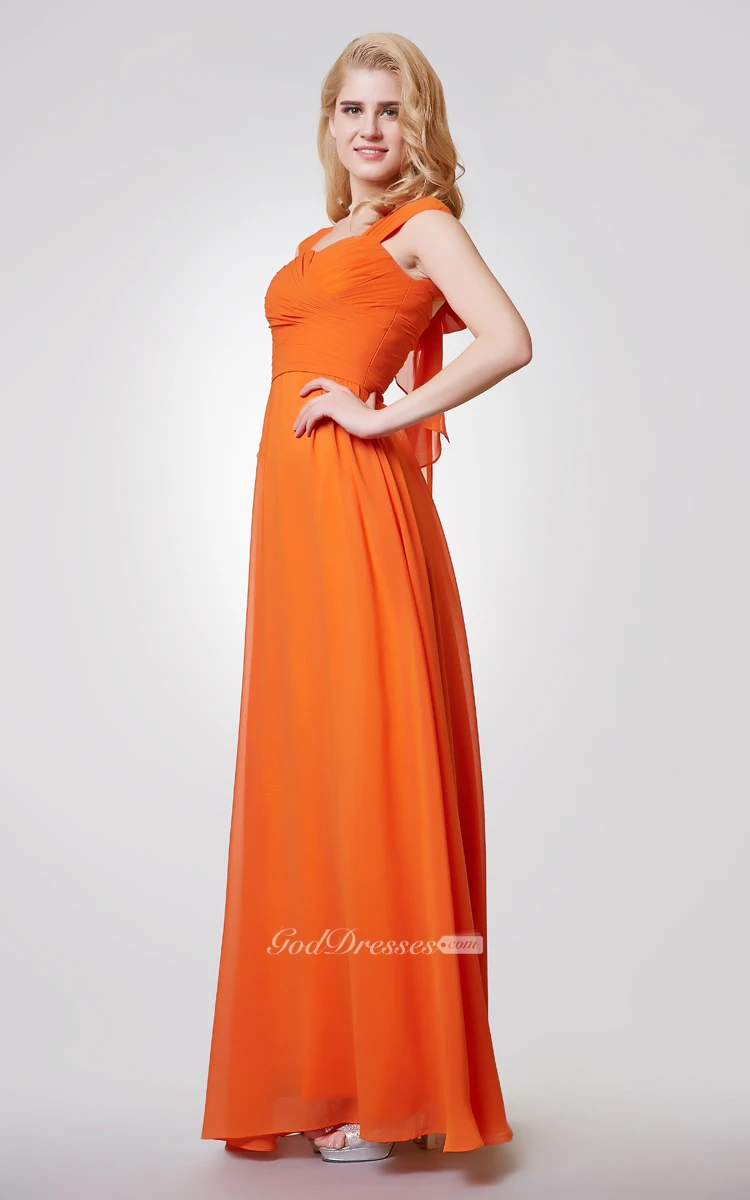 Cap Sleeve Long Chiffon Bowed and Ruched Dress