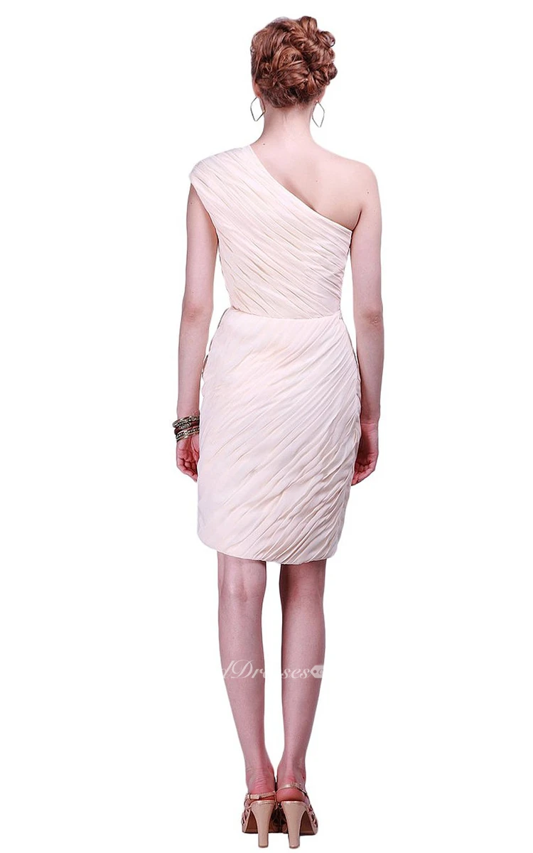 Cap-sleeve One-shoulder Ruched Short Sheath Gown