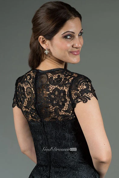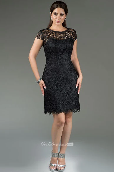 Cap Sleeve Scoop Neck Sheath Knee Length Mother Of The Bride Dress With Allover Lace