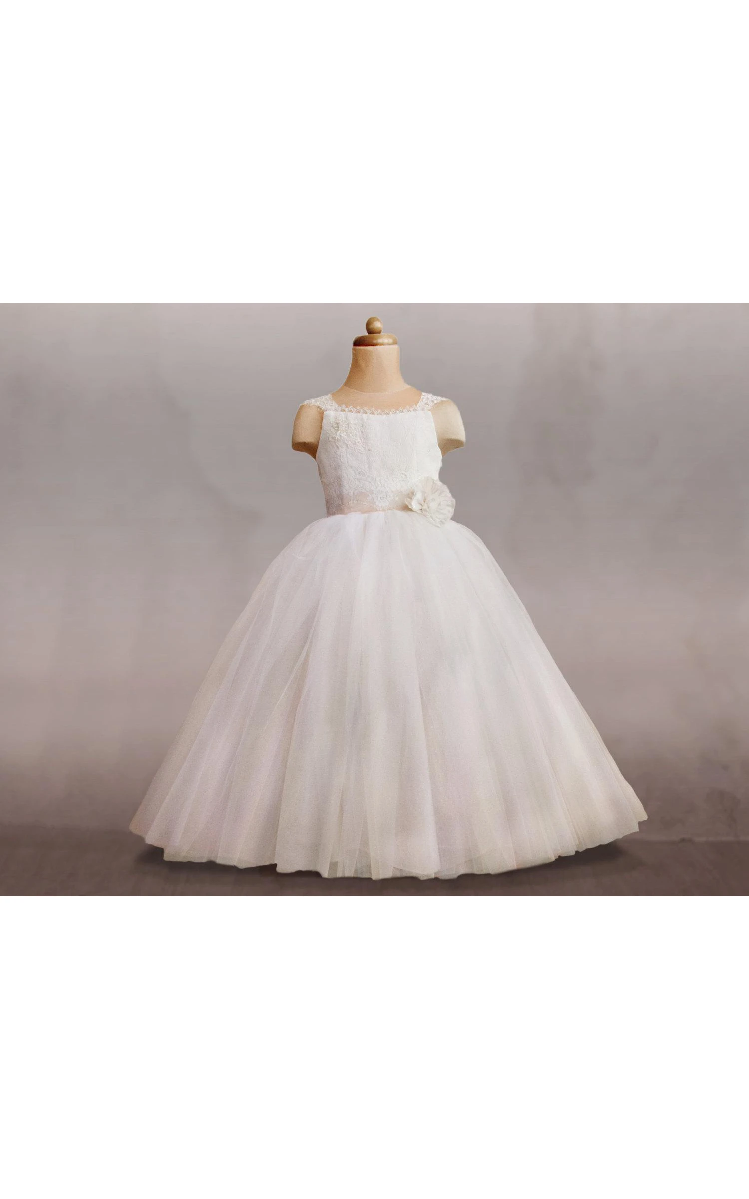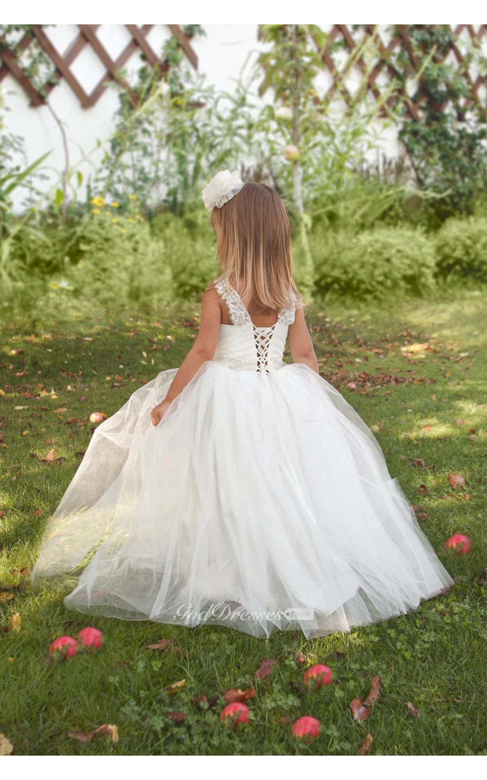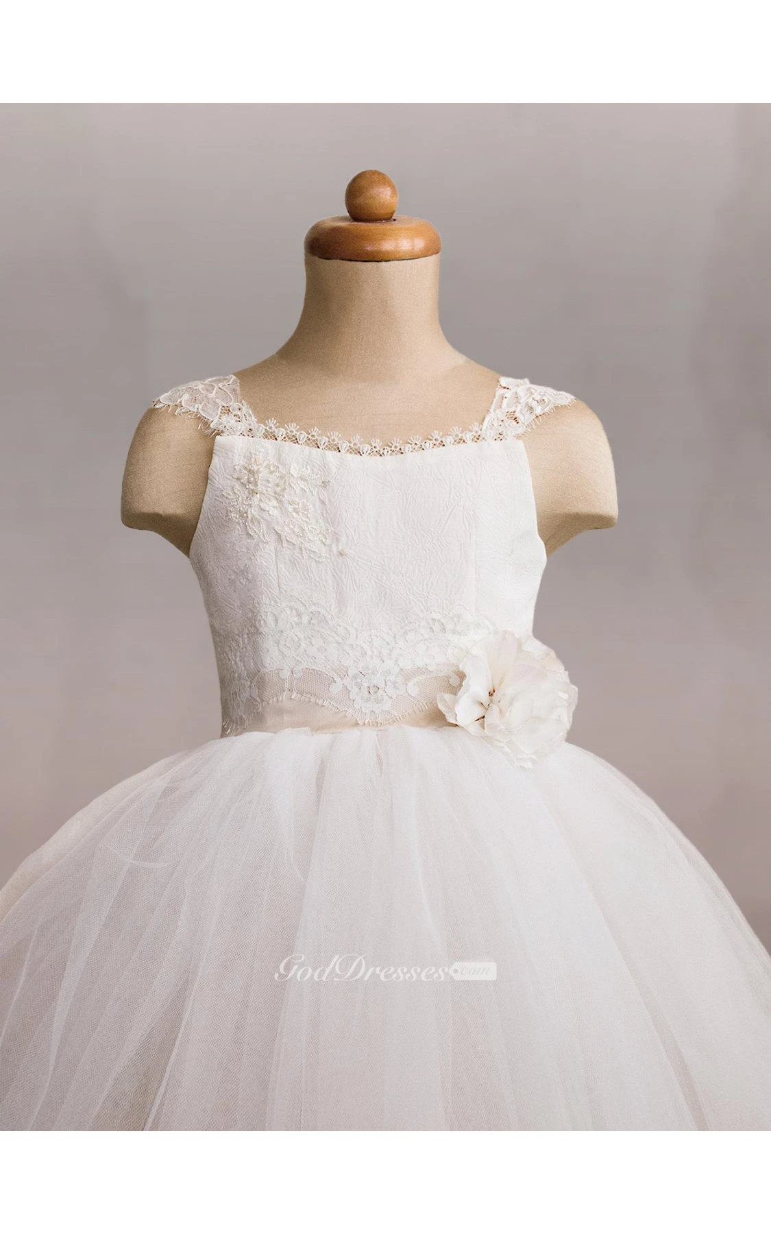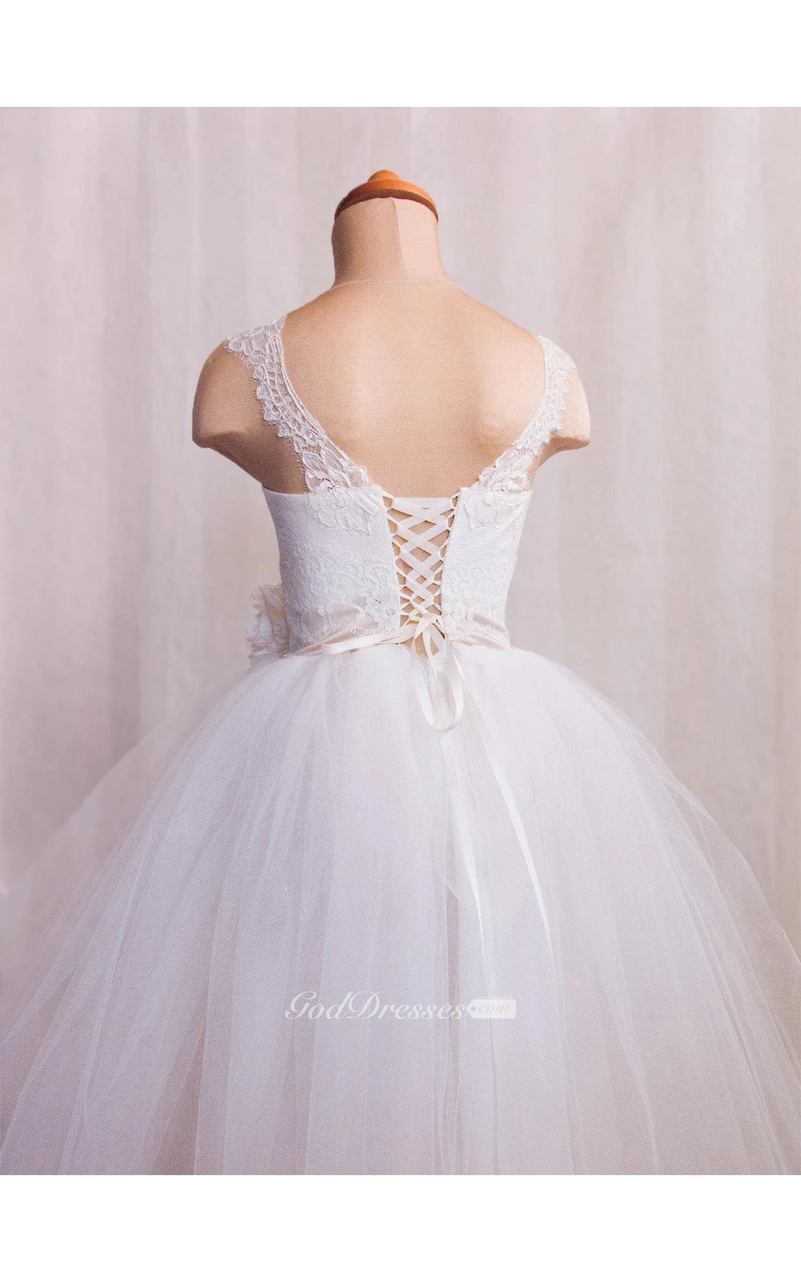 Cap Sleeve Tulle Ball Gown With Lace Up and Flower