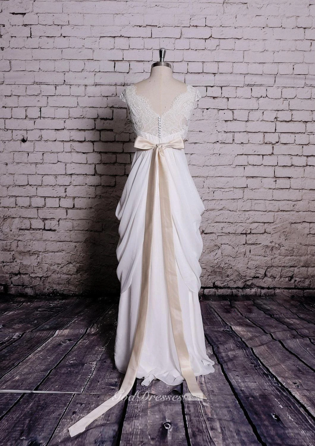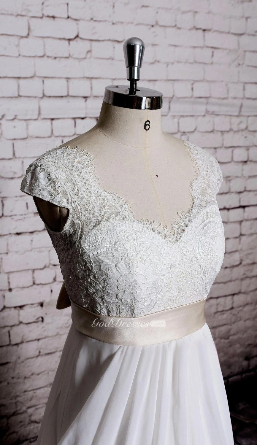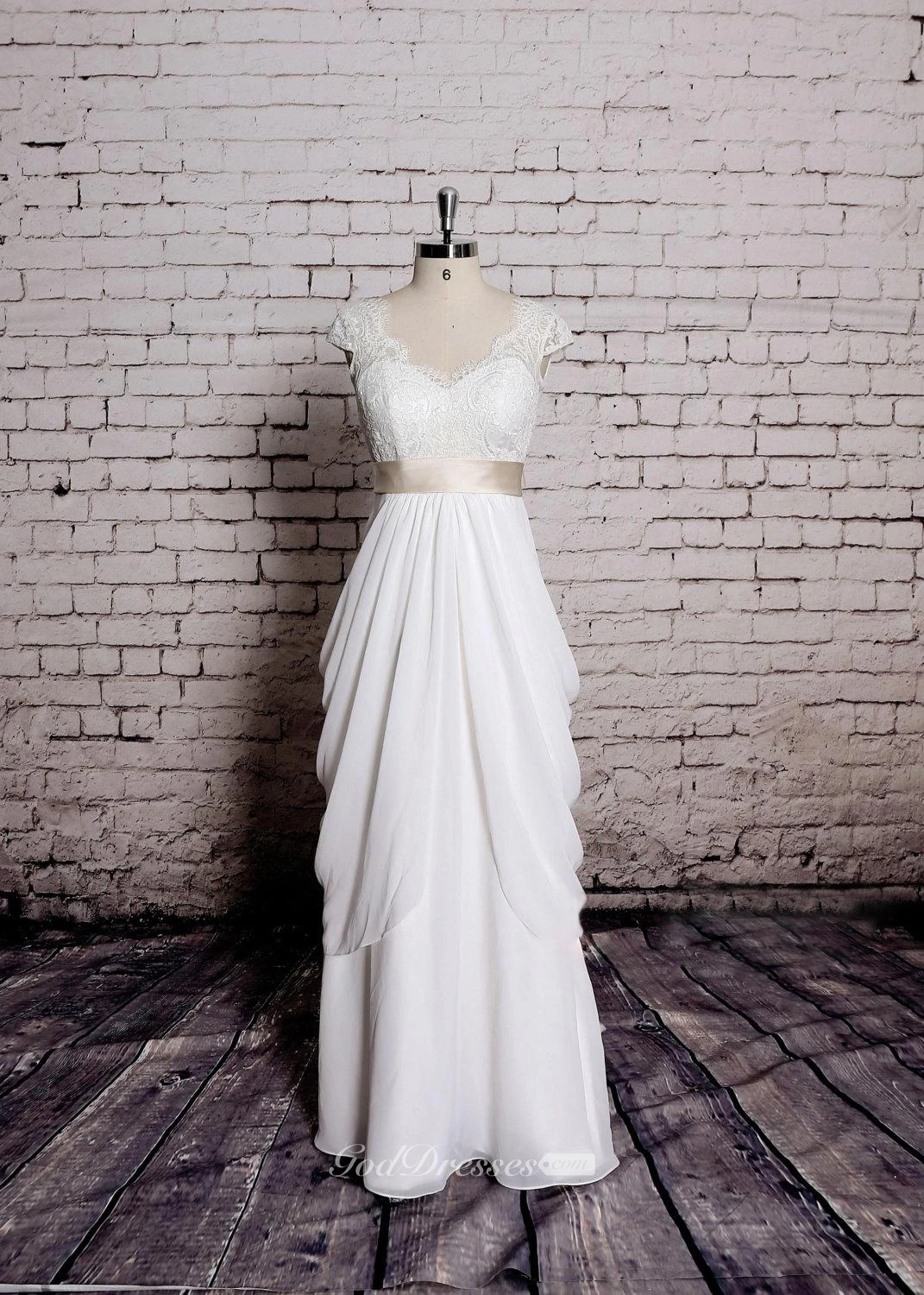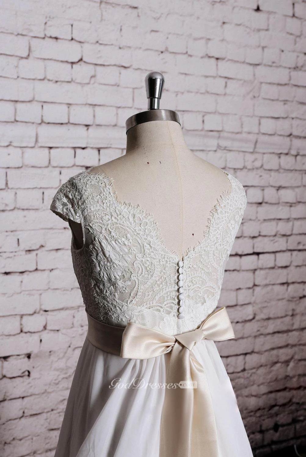 Cap Sleeve V-Neck A-Line Long Chiffon Dress With Satin Band