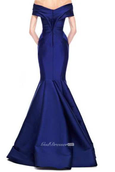 Cap Sleeve V Neckline Mermaid Satin Gown