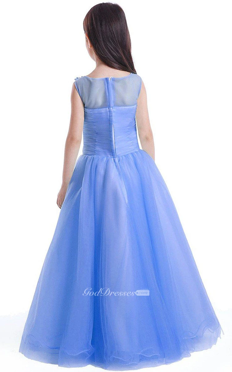 Cap-sleeved A-line Appliqued Dress With Illusion Back