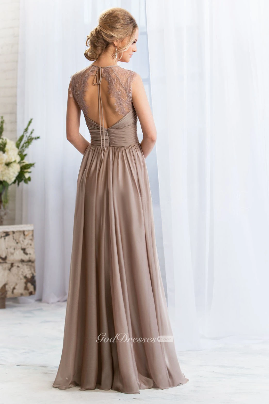 Cap-Sleeved A-Line Bridesmaid Dress With Feathers And Keyhole Back