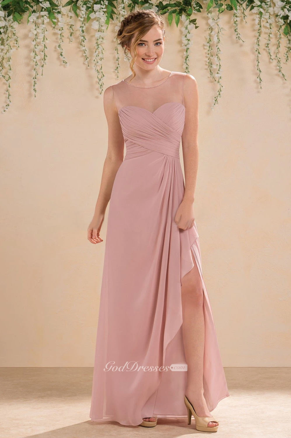 Cap-Sleeved A-Line Bridesmaid Dress With Illusion Keyhole Back And Side Slit