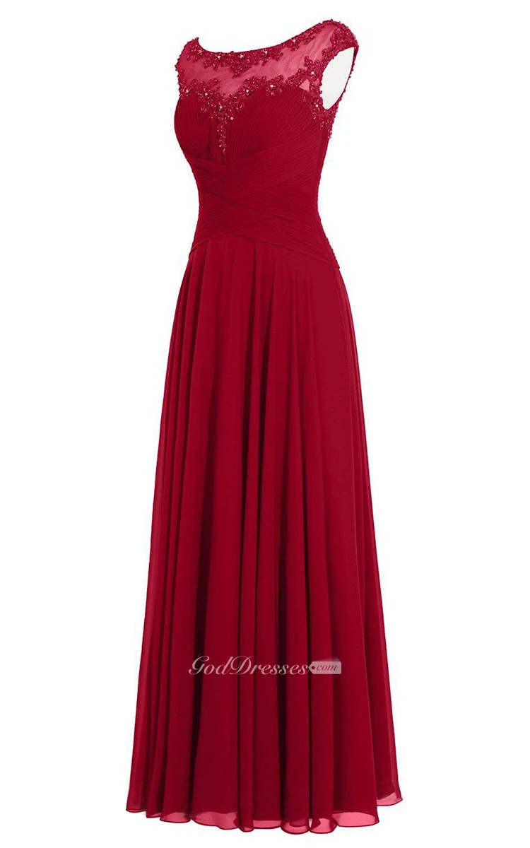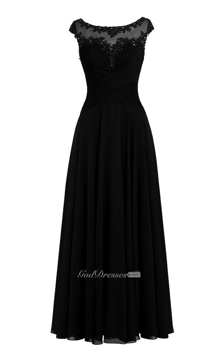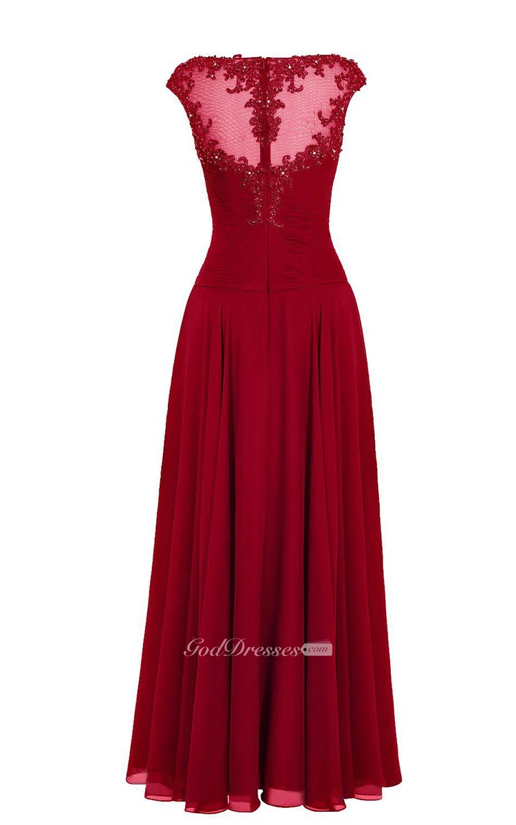 Cap-sleeved A-line Chiffon Dress With Illusion Neckline