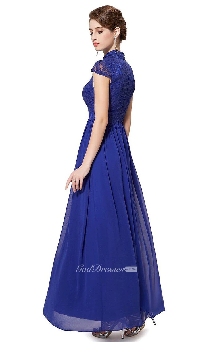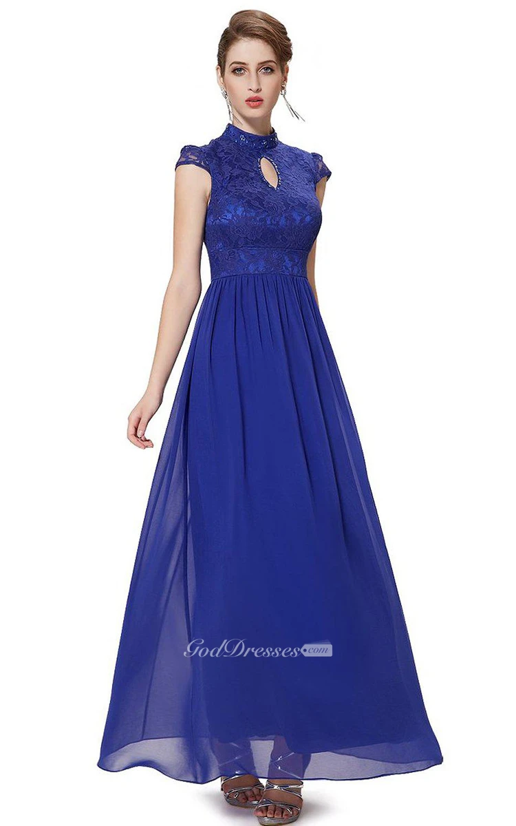 Cap-sleeved A-line Chiffon Dress With Lace Bodice
