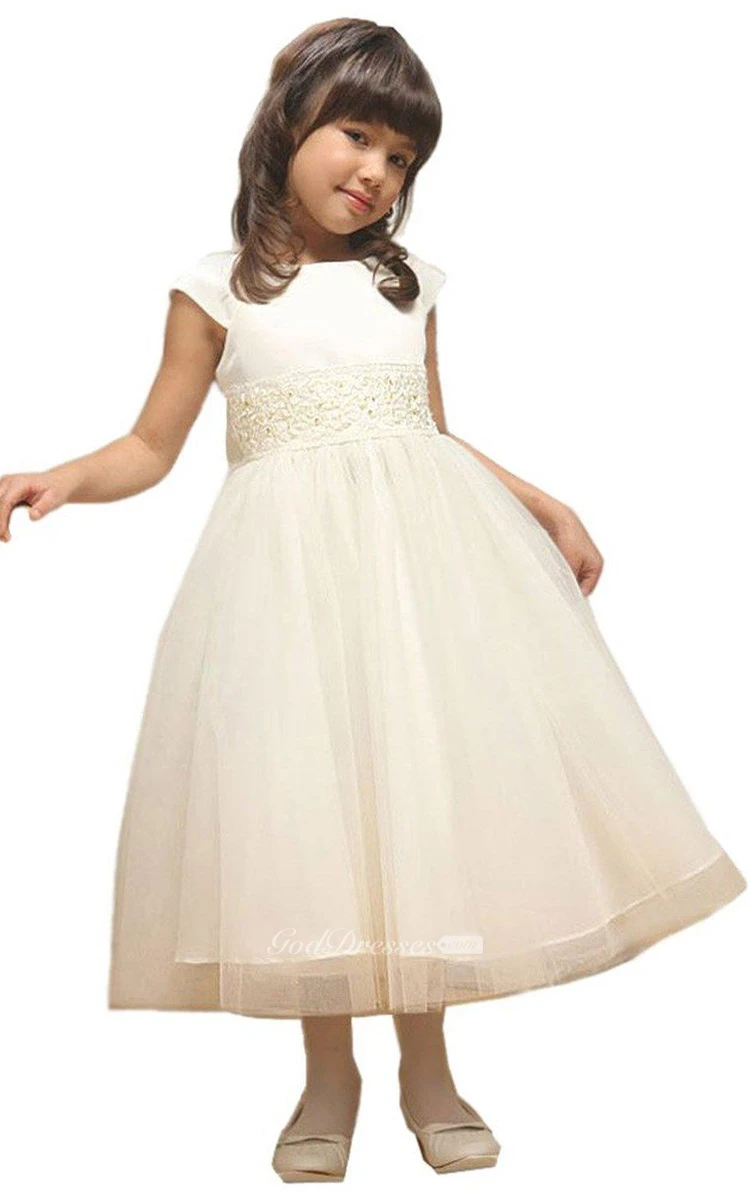 Cap-sleeved A-line Dress With Appliques and Pleats