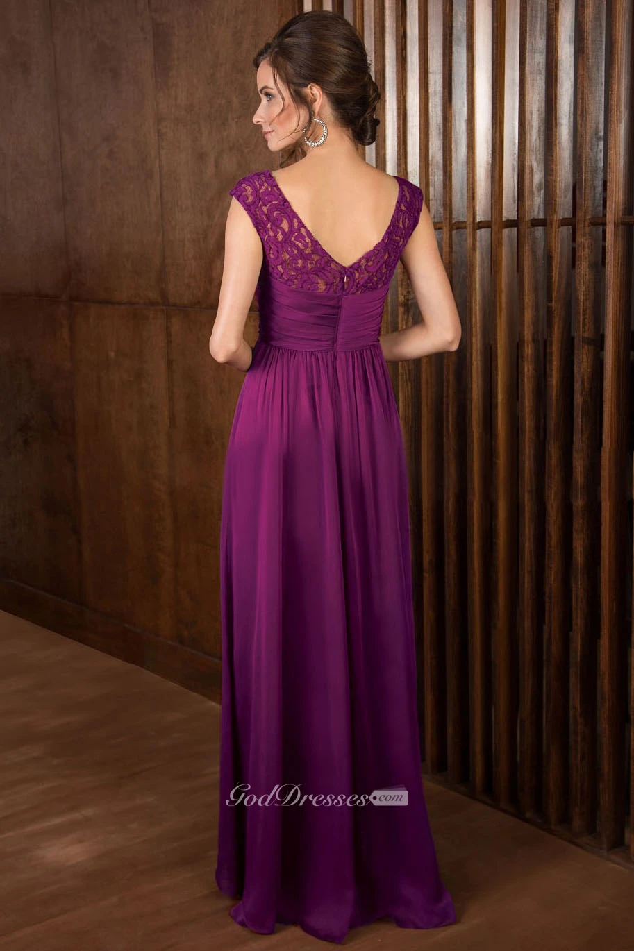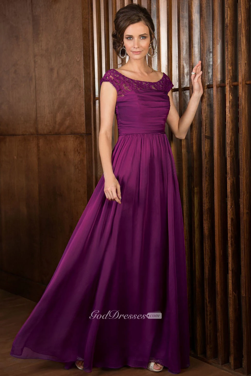Cap-Sleeved A-Line Floor-Length Mother Of The Bride Dress With V-Back