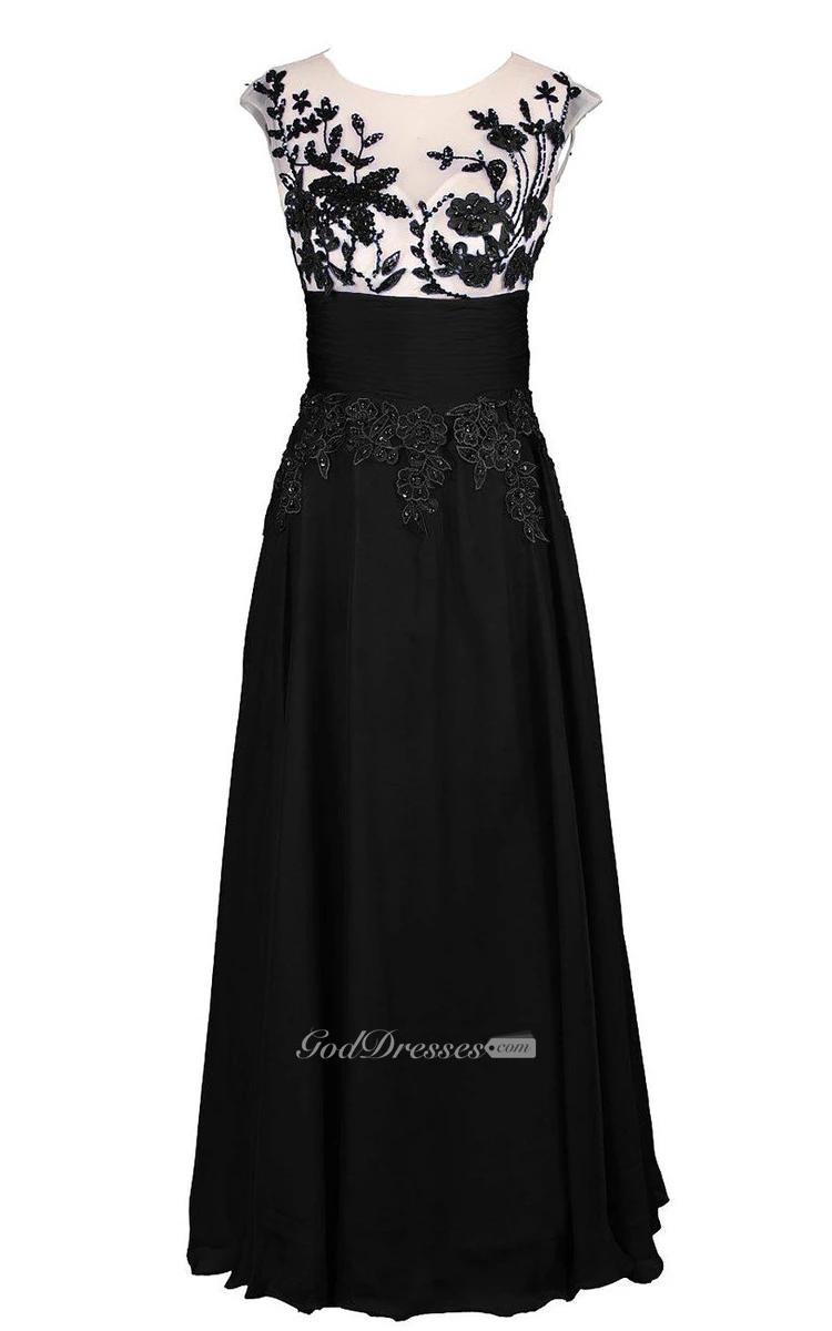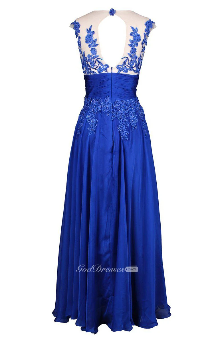Cap-sleeved A-line Gown With Appliques and Keyhole