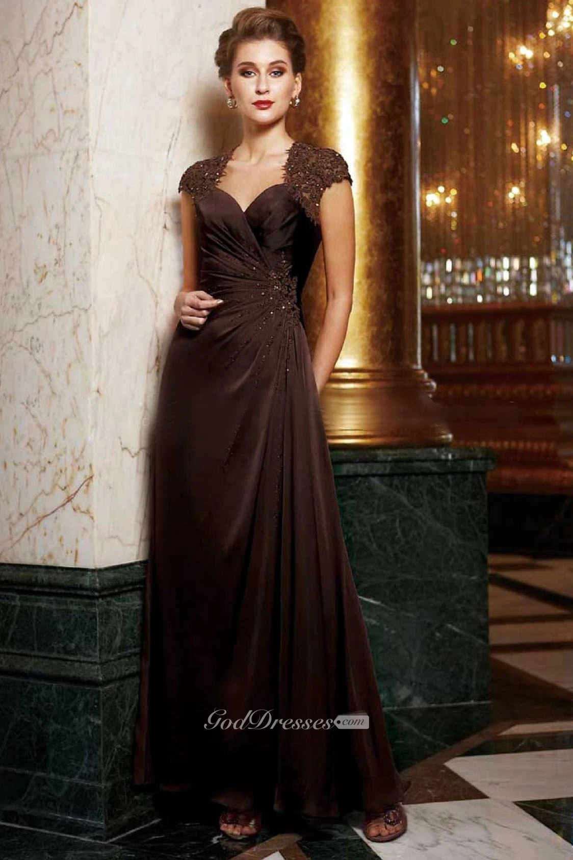 Cap-Sleeved A-Line Gown With Beadings And Appliques